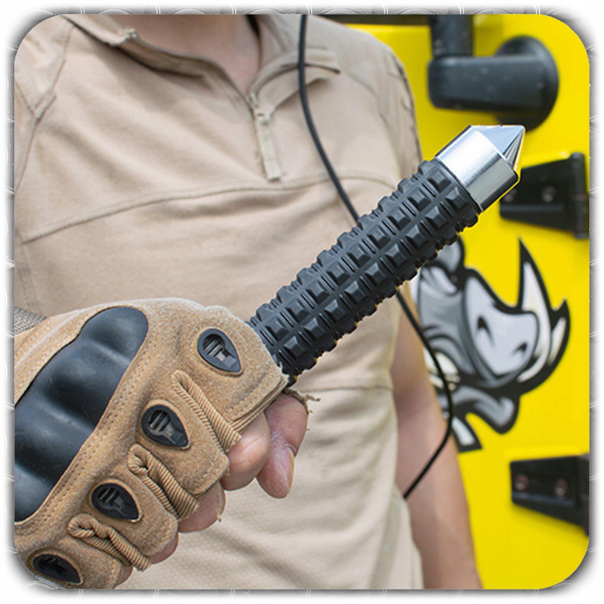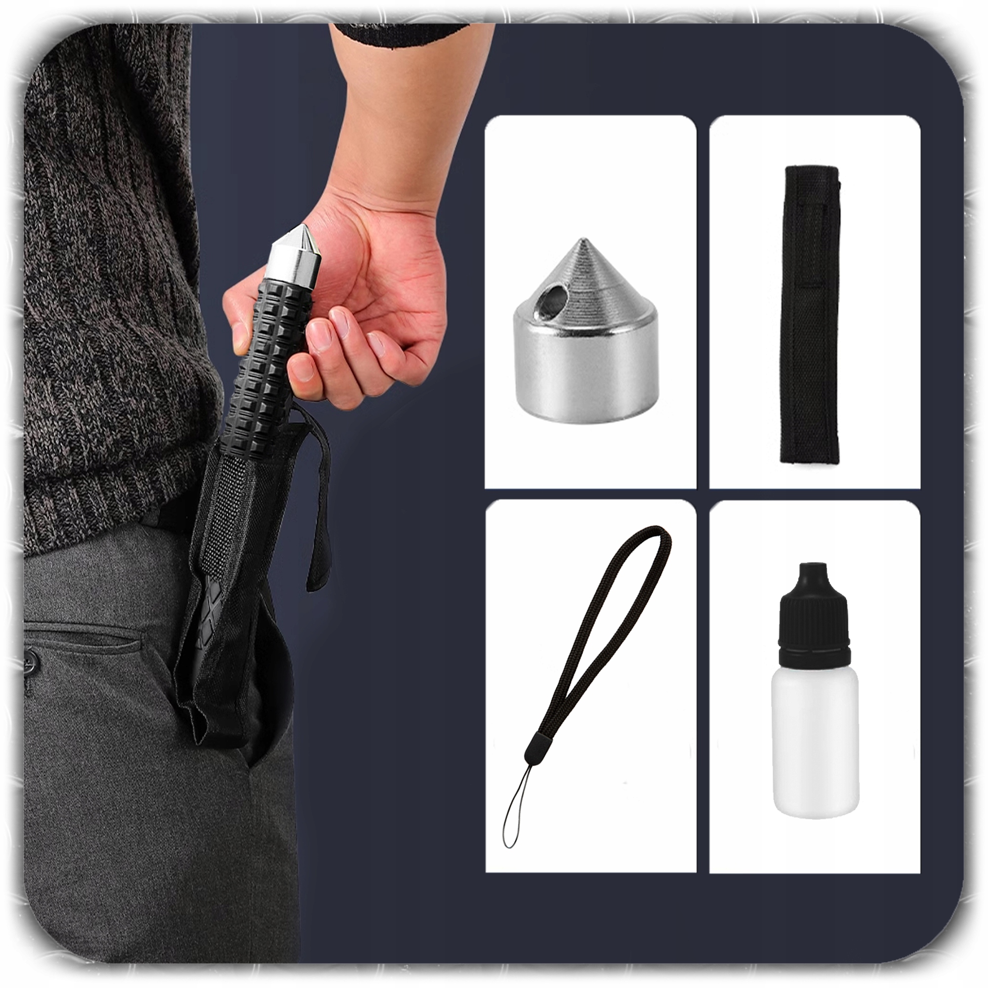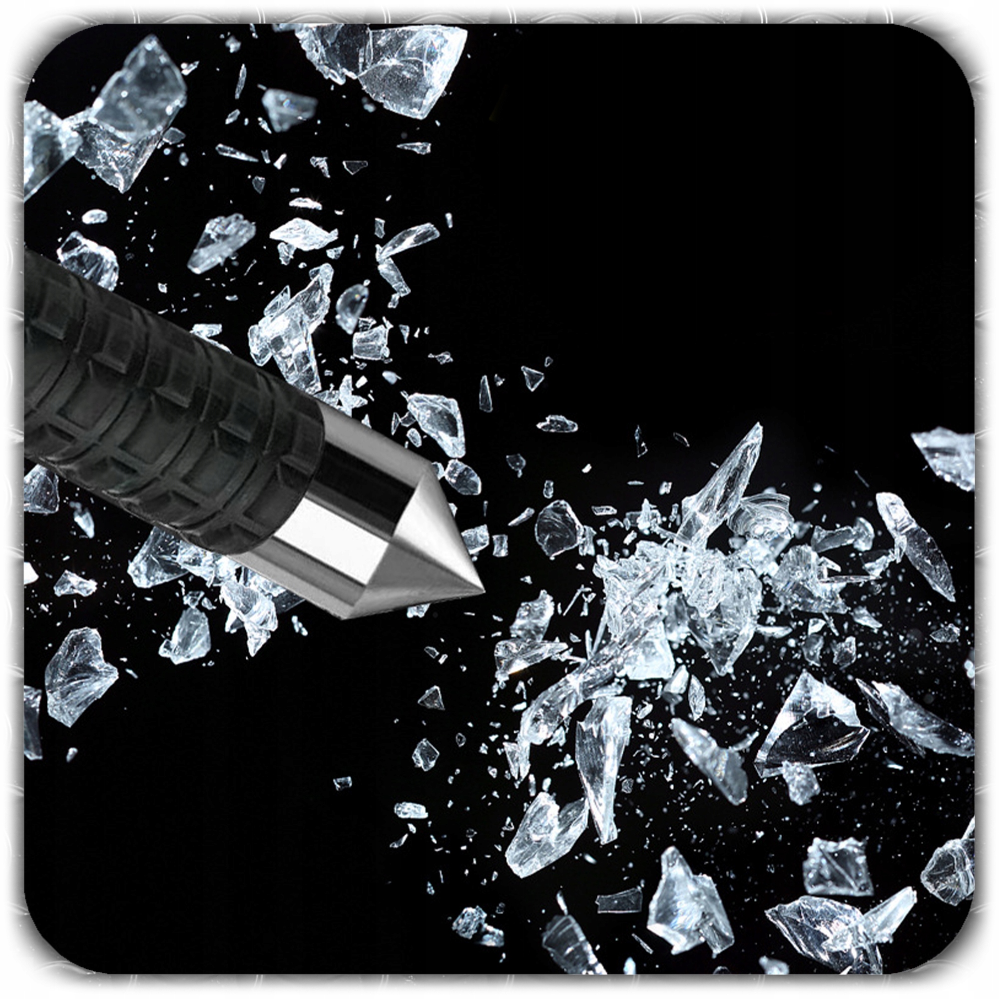 Модель виготовлена з загартованої леплової сталі , що робить її стійкою до зносу та пошкоджень. Крім того, він був оснащений накрученим до скла , що збільшує функціональність - чудове рішення, наприклад в надзвичайних ситуаціях у машині.
