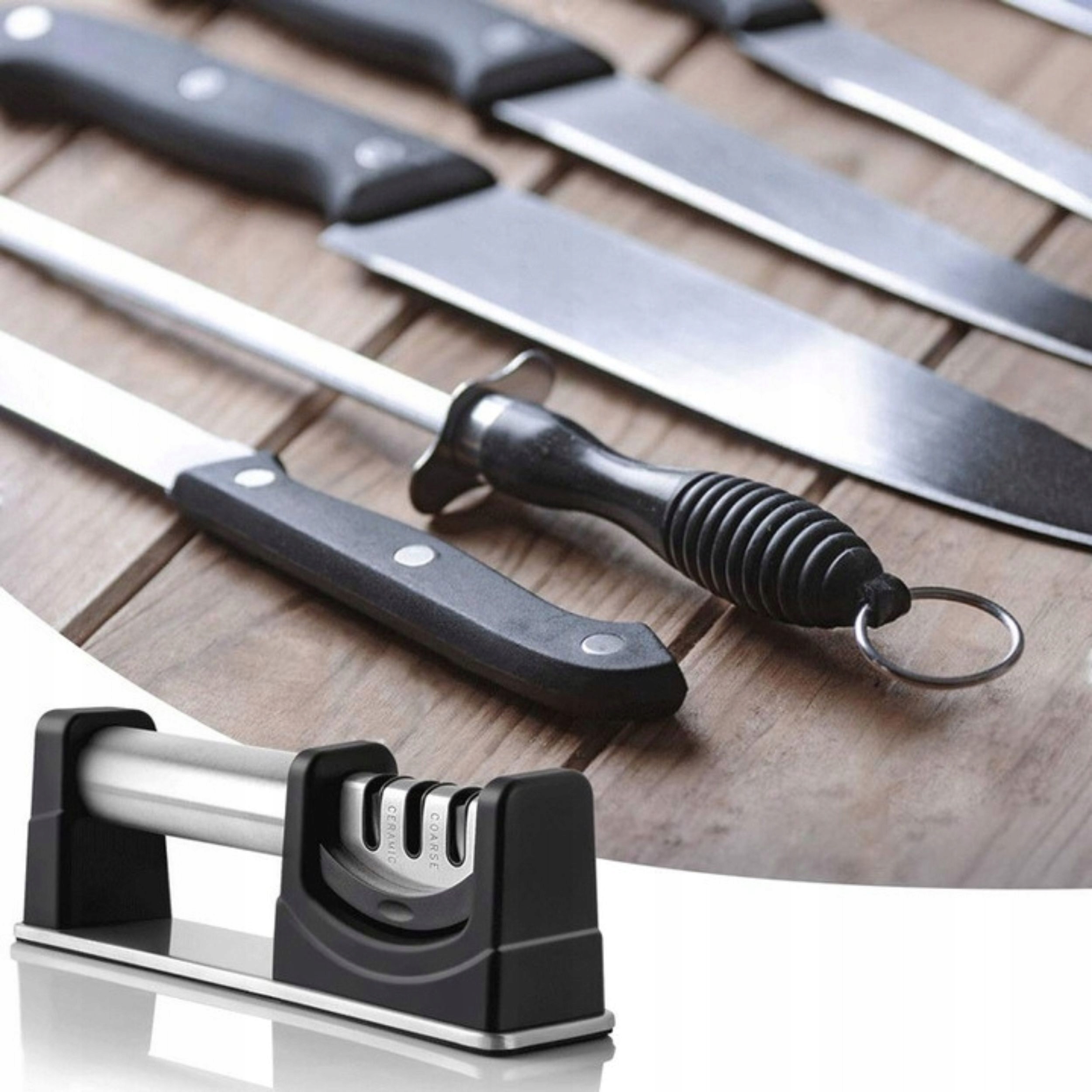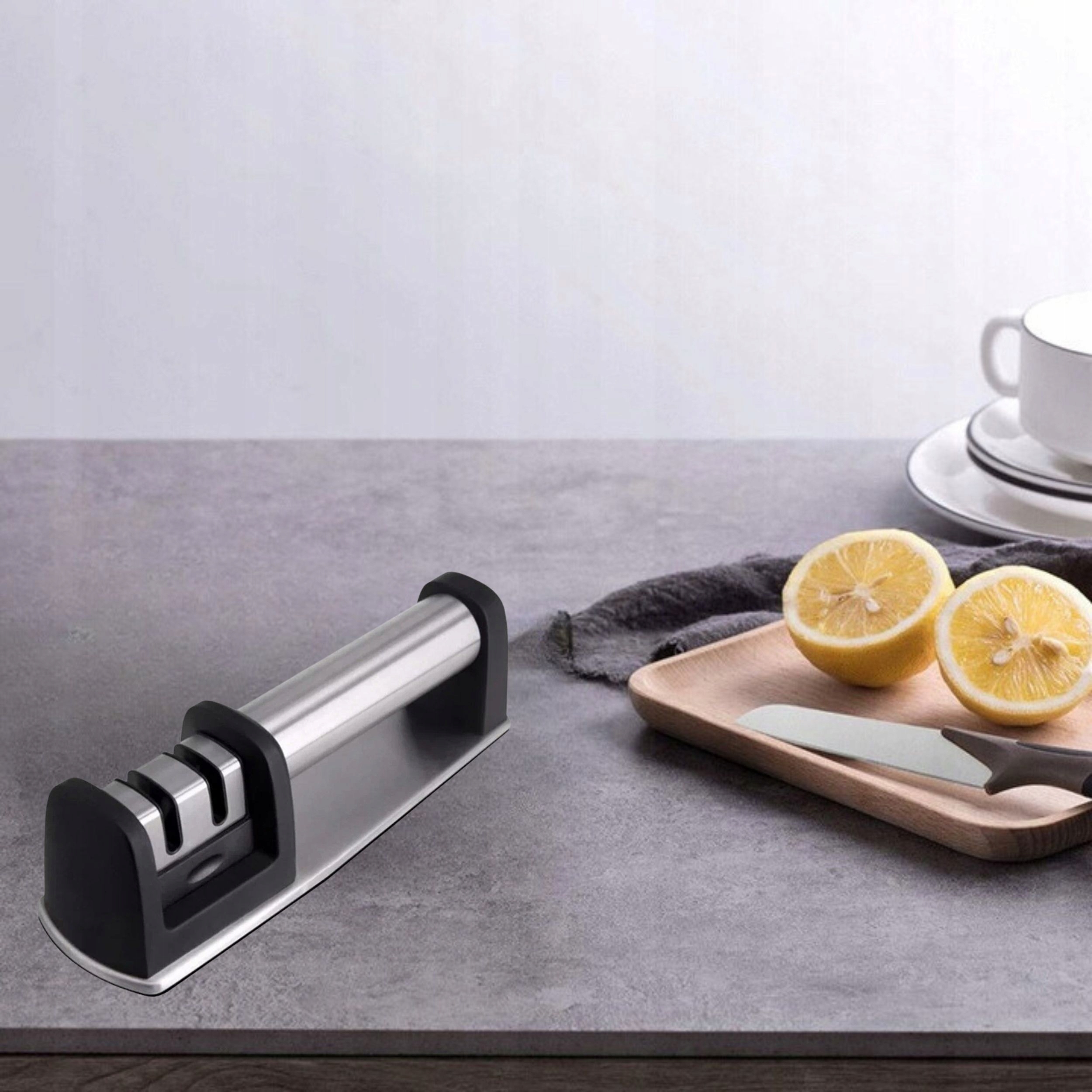 Ми пропонуємо професійну точилку ножа , ідеальний інструмент для кожного шеф -кухаря та коханця для приготування їжі, піклуючись про довговічність і різкість його ножів. Наша точилка забезпечує двоступеневу систему заточення, яка зробить ваші ножі, як нові.