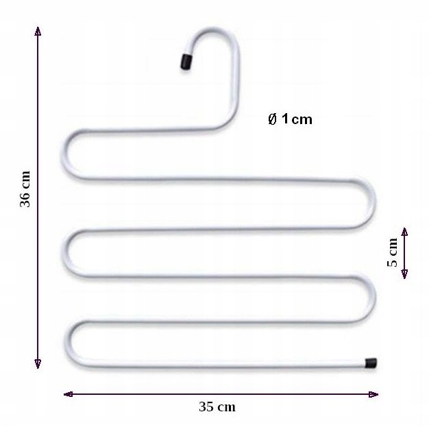 Міцна сталева вішалка для штанів. Дозволяє повісити до 5 пар штанів одночасно. Чудовий спосіб заощадити місце в тісній шафі. Виготовлений з міцних матеріалів (сталь) гарантує тривале і безпроблемне використання.