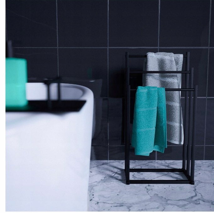 Вішалка для рушників виготовлена з високоякісної чорної сталі з порошковим покриттям. Це найкращий матеріал для використання в умовах високої вологості.