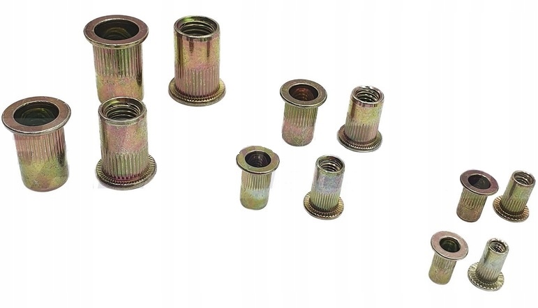 Сталеві глухі заклепкові гайки від M3 до M10 від Falon Tech. Циліндричний фланець має накатку, завдяки чому він щільніше прилягає до кріпильного елемента.