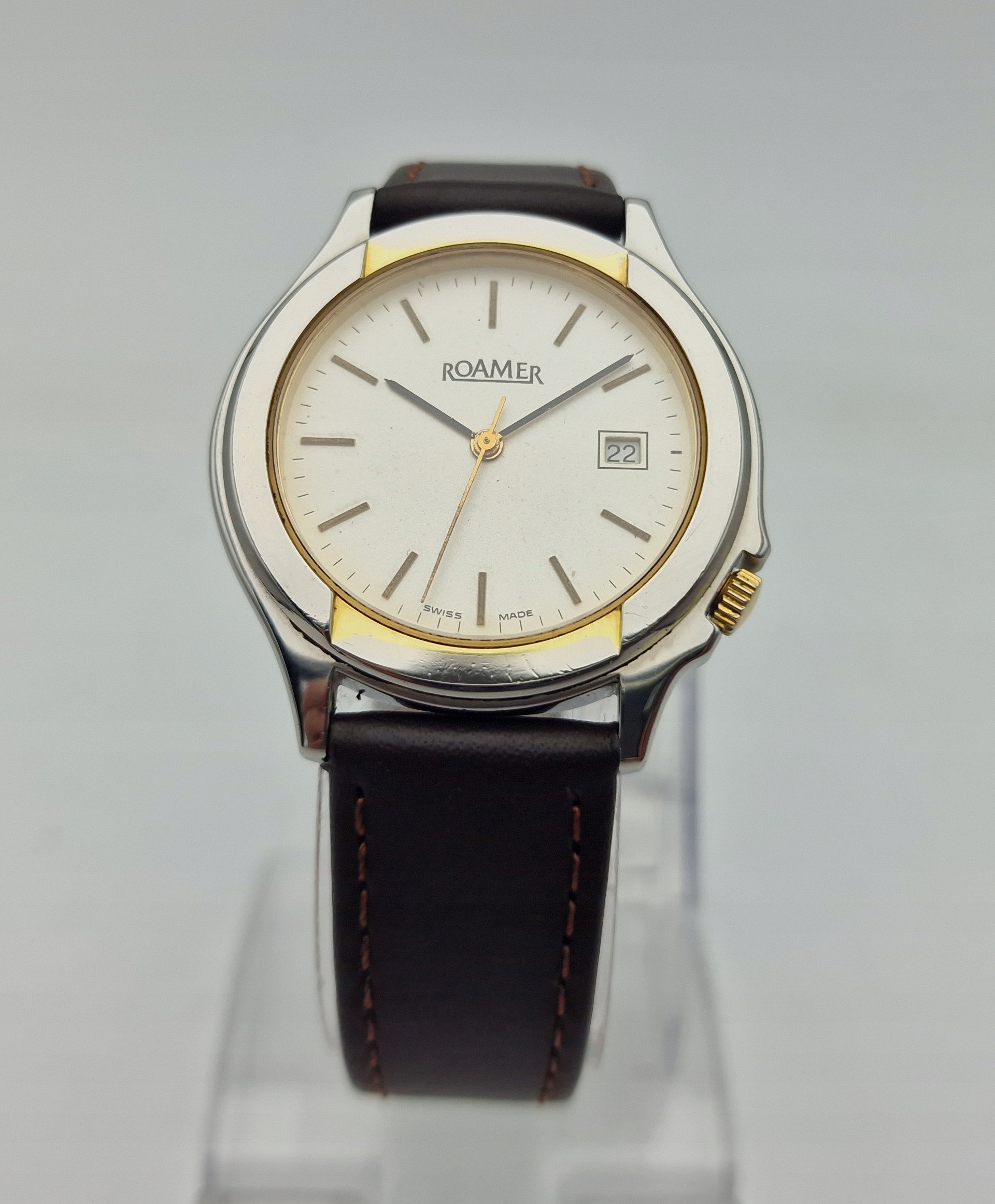 Цього разу я повинен запропонувати ознаменний годинник для цінителів та зачаровує. Це класична модель годинника Roamer від 80 -х у сталевому конверті. Годинник на хорошій і пунктуальній прогулянці. Майже в ідеальному стані ...