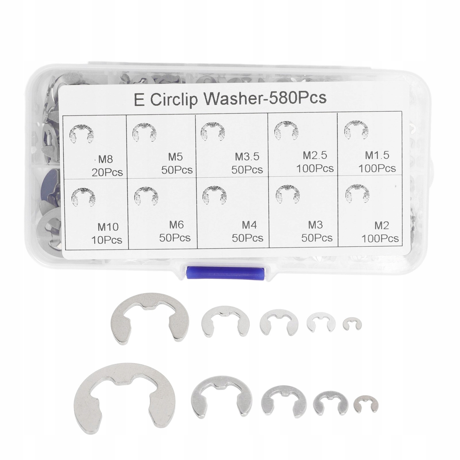 Набір стопорних кільцевих кільцевих шайб із 580 шт. із ящиком для зберігання з нержавіючої сталі, міцне кріплення, утримуюча накладка типу E, срібляста