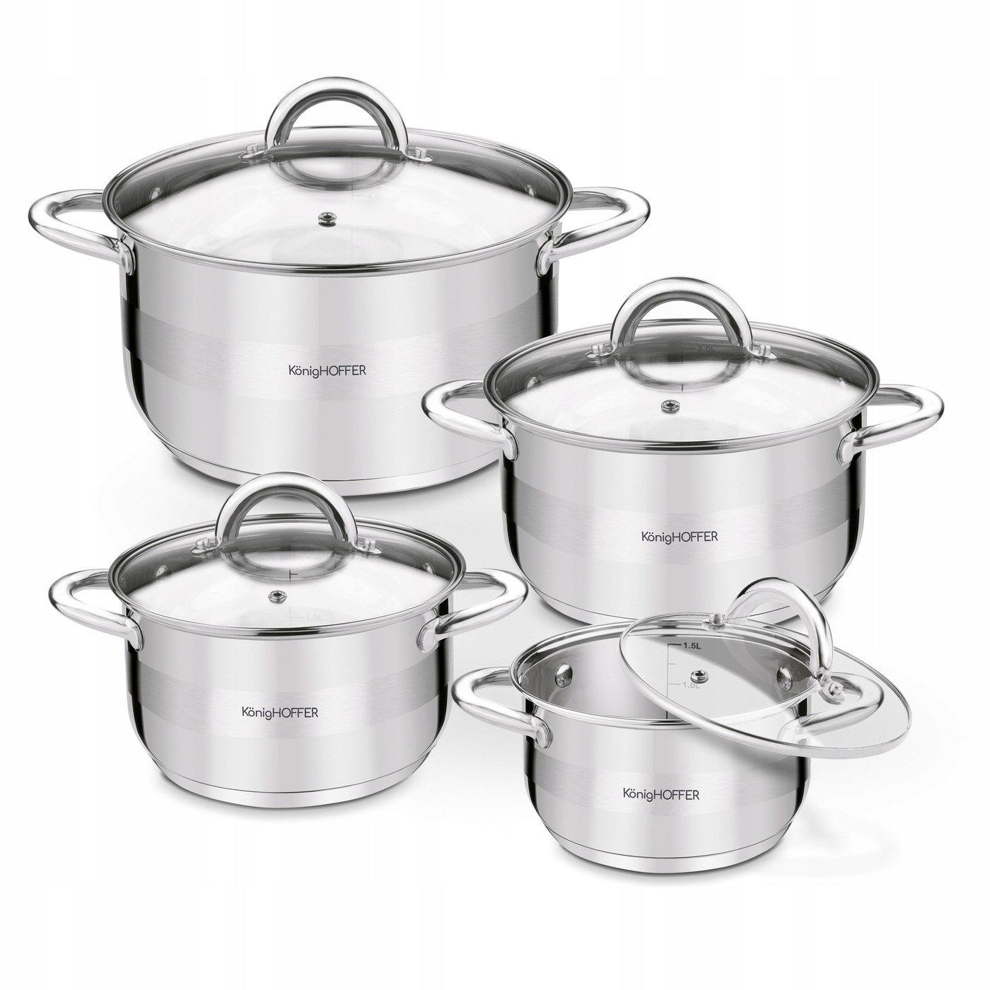 СТАЛЕВІ каструлі для газу + кришки, набір ІНДУКЦІЙНИХ каструль, 8 шт. Фаро