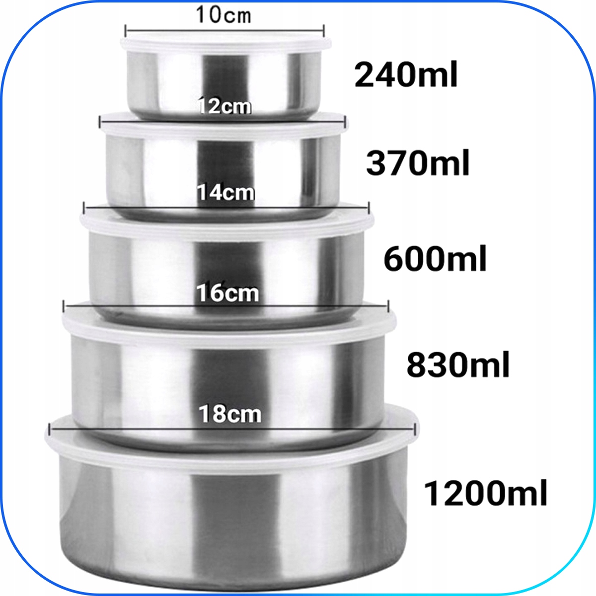 - ✅ 5 мисок різних розмірів (10-18 см) і місткості (240–1200 мл)