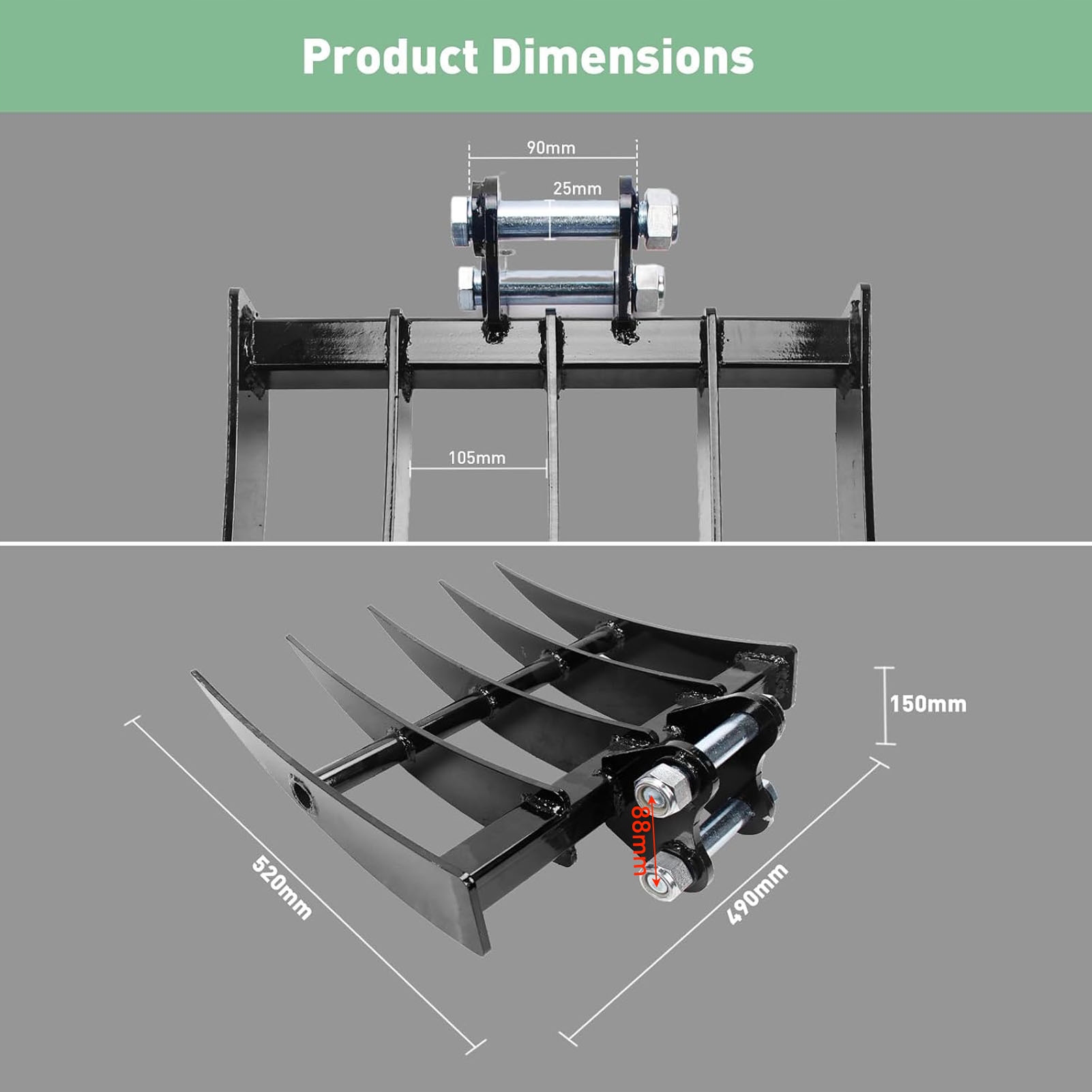 2. Широка сумісність: ця граблі підходить до більшості невеликих екскаваторів на ринку, що містить діаметр 25 мм, що відкривається з середнім інтервалом 88 мм і 90 мм.