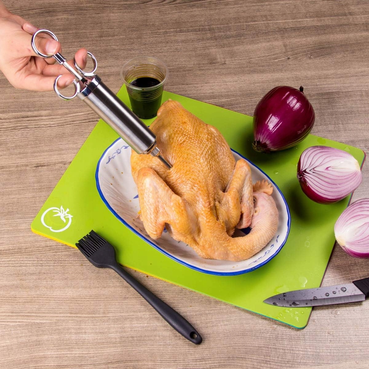 - ✅ універсальність використання - шприц, що підходить для свинини, яловичини, курки, птиці та морепродуктів. Його можна використовувати для введення рідкого масла, ароматизаторів і дрібно нарізаних трав безпосередньо до м'яса.