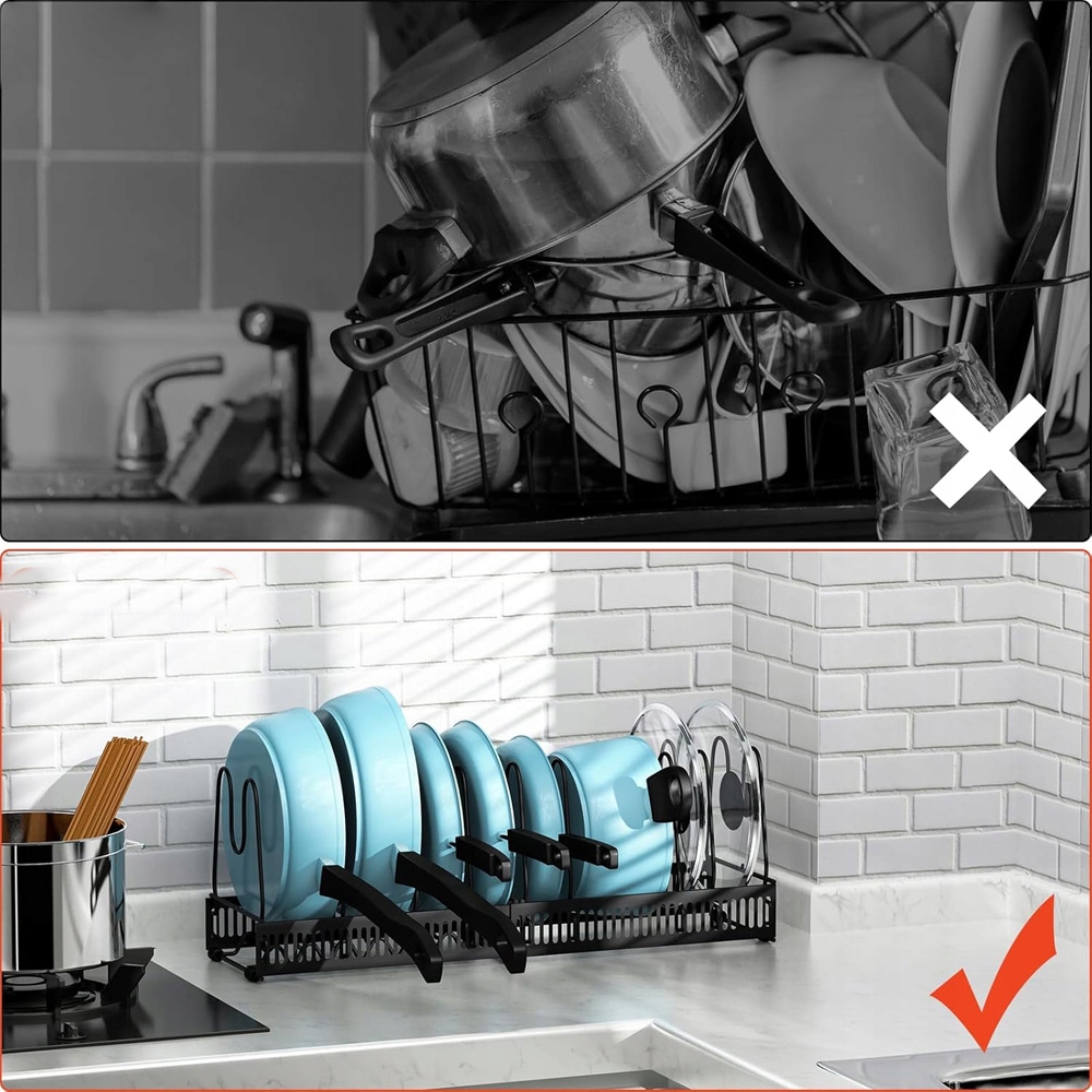 ✅ Ідеально підходить для зберігання кришок, горщиків та каструль тощо, заощадження на кухні багато місця та дозволяє їм швидко знайти або видаляти.
