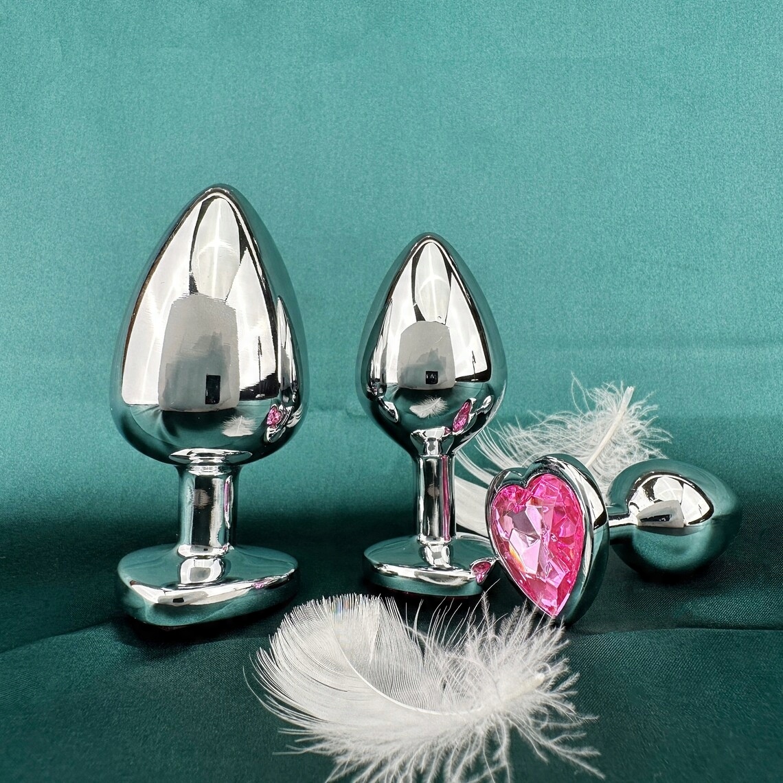 ⭐Цей набір блискучих металевих анальних свічок із блискучою РОЖЕВОЮ основою у формі серця, прикрашеною дорогоцінними каменями, обов’язково змусить вас закохатися в анальні ігри.
