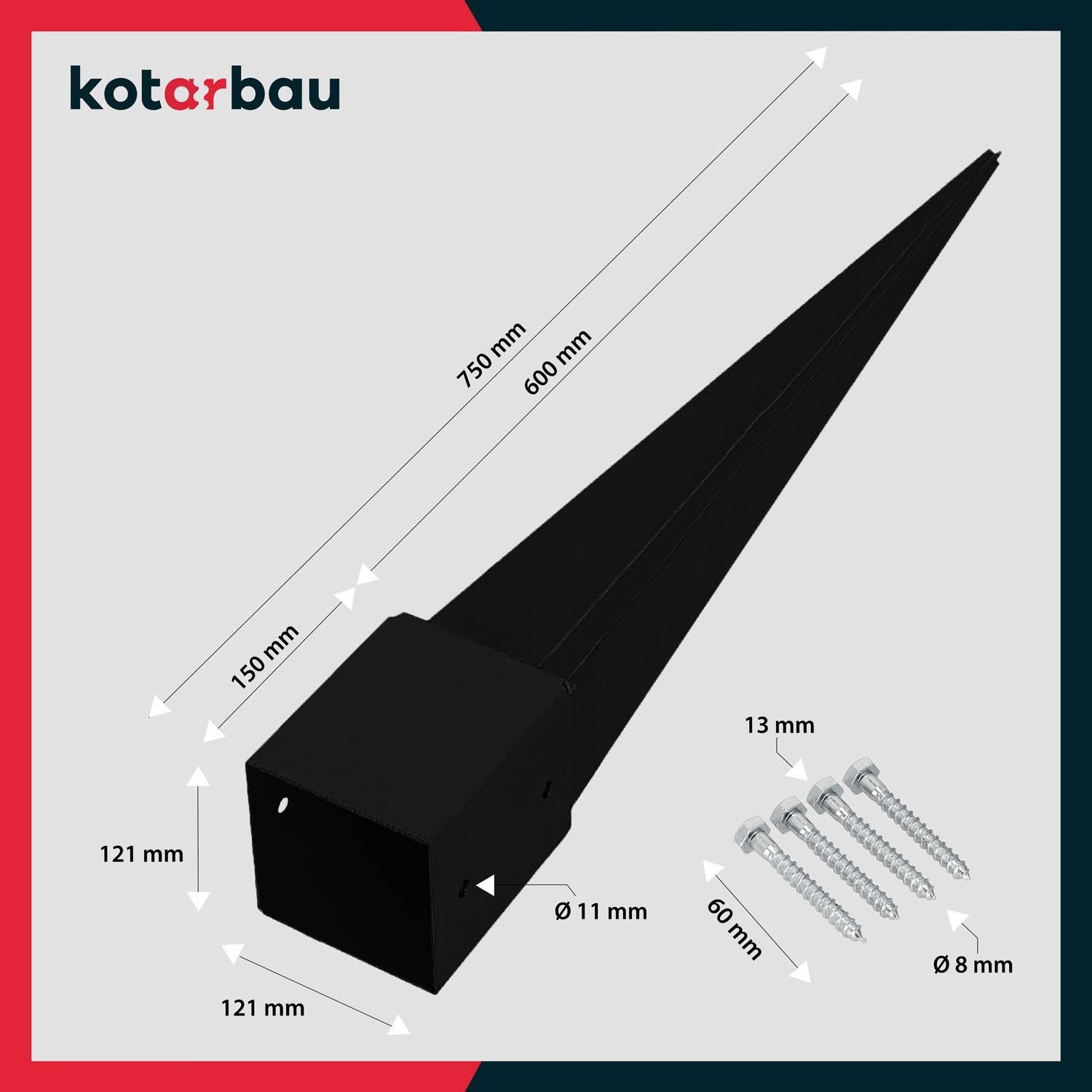 ОСНОВА СТОЛБА, ЧОРНИЙ СТАЛЕВИЙ АНКЕР 121X121X750 ММ ДЛЯ ВВИБЛЕНОЇ ПЕРГОЛИ