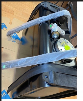 Сталевий резервуар продається в комплекті з повітряним фільтром, стрічками, гумовими стрічками та гумовими опорами, які видно на фотографіях.