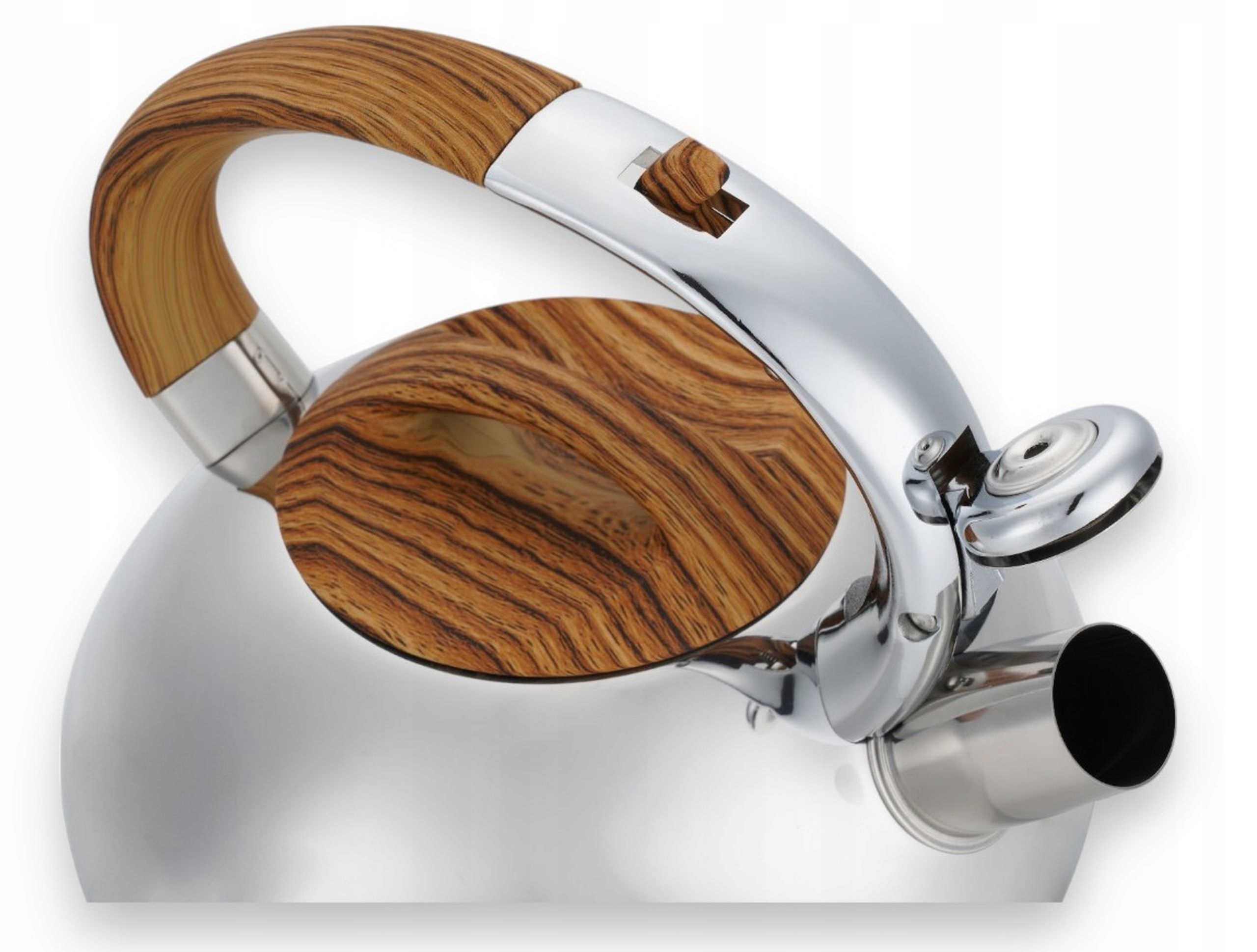 ✅ Ручка: Ергономічна, що імітує дерево, термостійка, з вбудованим механізмом відкривання свистка.