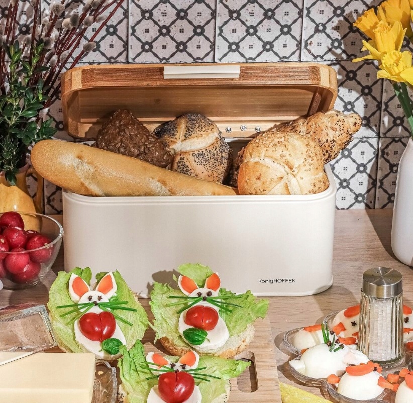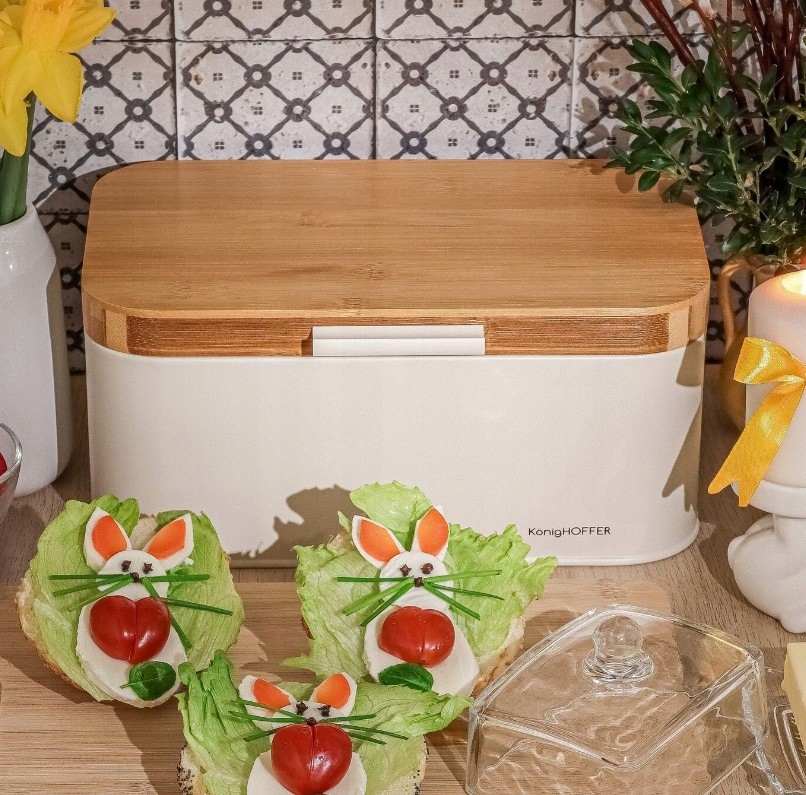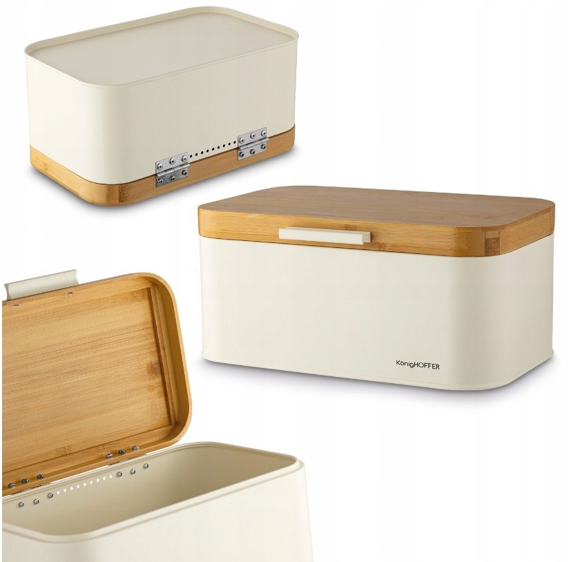 Konight Konight Konight Capri 30,5 х 18 х 14 см був виготовлений з вуглецевої сталі. Модель закрита у вигляді дерев’яної кришки. Він захищає зміст від добре забруднення та світла. Він також забезпечує безкоштовний доступ до вмісту. Закриття є бамбуковим, міцним і нахиленим (петлями). Продукт має смачну обробку і є просторим. Елегантність йому надається простою формою та тонкими деталями. Він розмістить хліб та рулони для всієї родини. Це пропозиція для тих, хто цінує свіжість, хрусткість та аромат свіжого хліба і шукає тверду ємність хліба. Ви можете встановити Capri Breafcack на кухонному прилавку. Чудово підходить для маленької кухні.