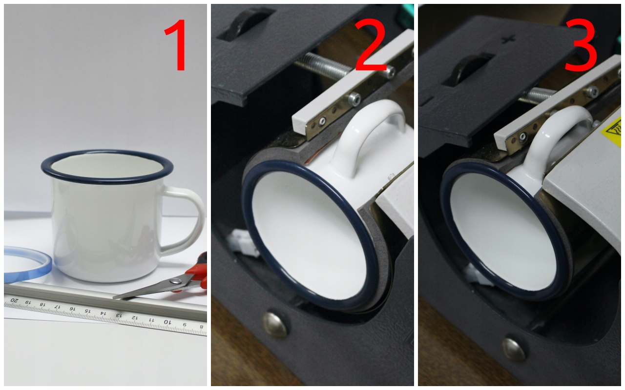 3⃣ Після закриття преси туш проникає в поверхню кухля, , що робить друк тривалим, не натирається і не згасне.