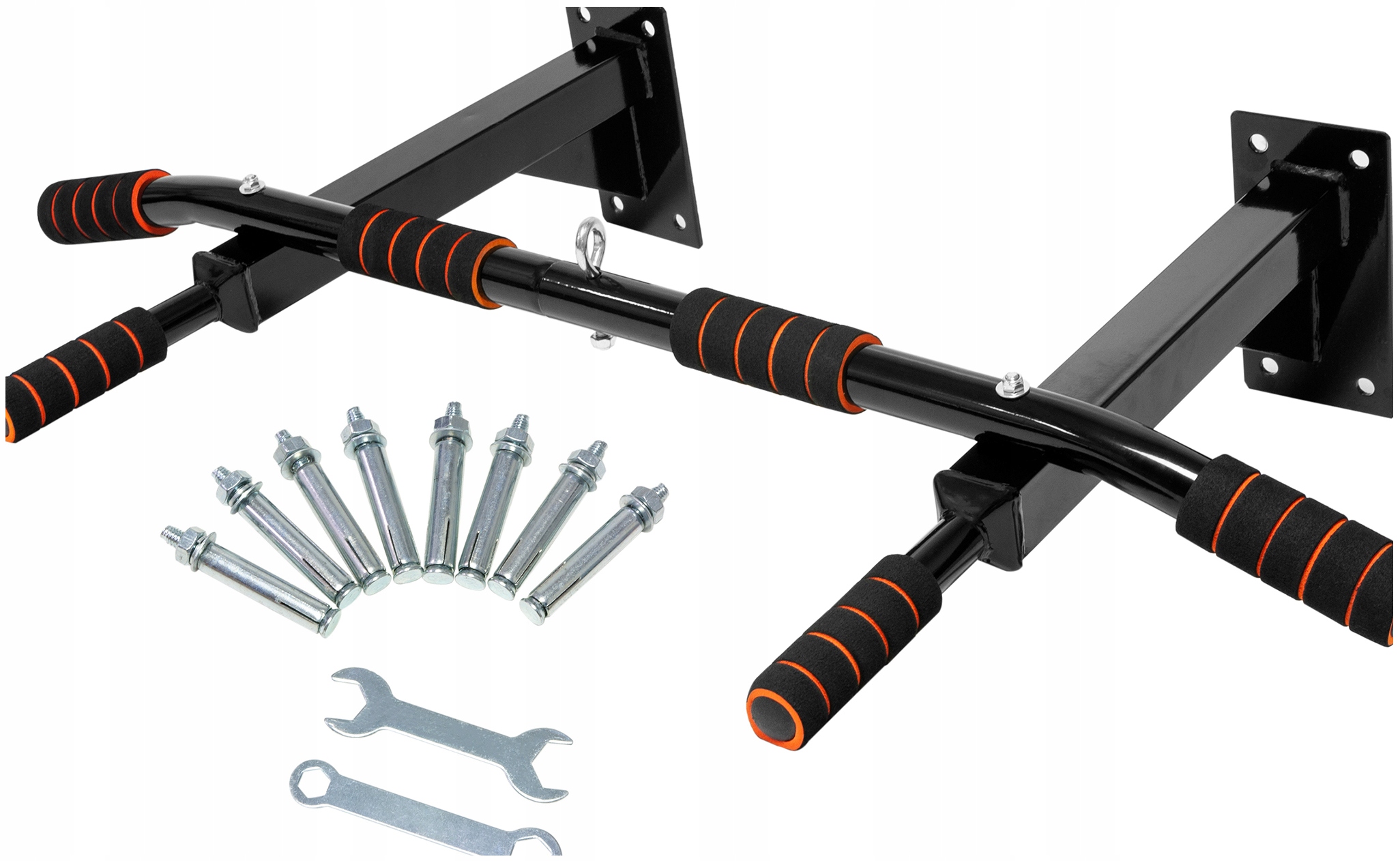 Професійна настінна/стельова штанга з нержавіючої сталі, покрита неопреновою піною для кращого зчеплення під час підйому. Штанга має 3 різні хвати: широкі хвати, паралельні стіні, вузькі хвати, паралельні стіні, нейтральні хвати, перпендикулярні стіні. Під час підтягувань працюють багато груп м'язів, зокрема: біцепси, трицепси, м’язи спини, передпліччя та дельти.