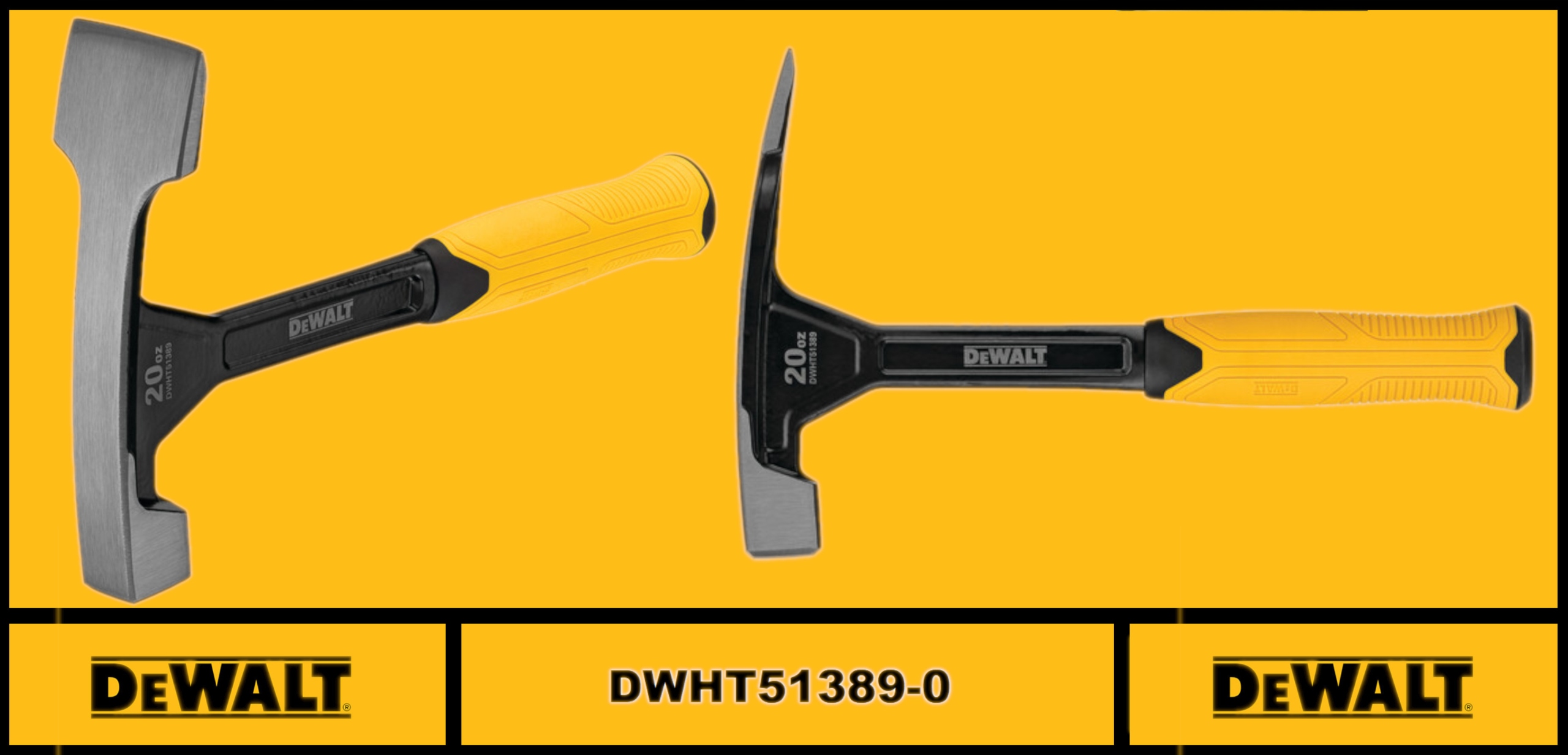 Молоток DeWalt Rhenish загальною вагою 567 г, із розширеною головкою та сплощеним широким зубилом. p>
