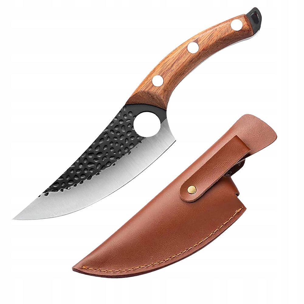 СТАЛЕВИЙ М'ЯСНИЙ НІЖ З ЧОХЛОМ КУХОННИЙ НІЖ CHEF'S КОВАНИЙ РУЧНОГО КОВАННЯ