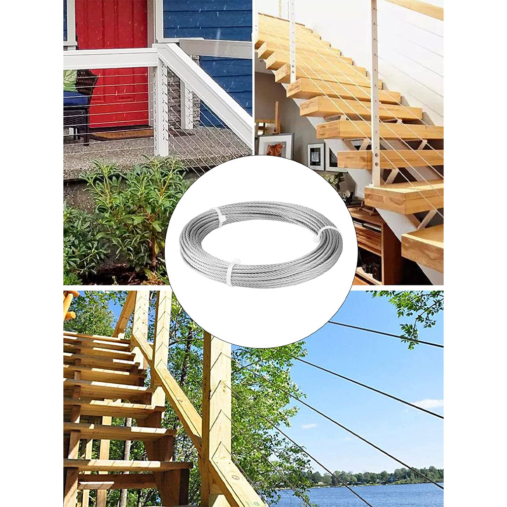 Металевий кабельний трос без покриття 3 мм, виготовлений із нержавіючої сталі 304 для зовнішнього використання, міцний і довговічний, водонепроникний, стійкий до іржі та корозії, а також має високу довговічність; з конструкцією 7x7, що складається з 7 груп по 7 ниток, сплетених разом, щоб створити міцний, гнучкий кабель, який перевершує інші конфігурації кабелів, має довший час роботи та може використовуватися в будь-яку негоду!