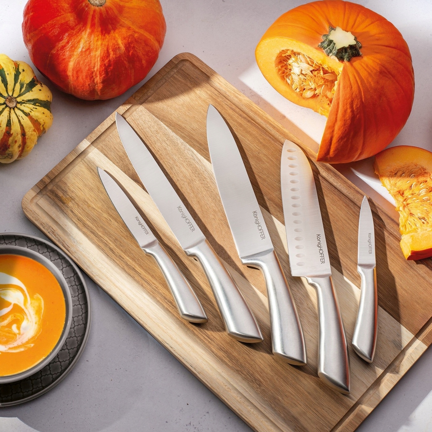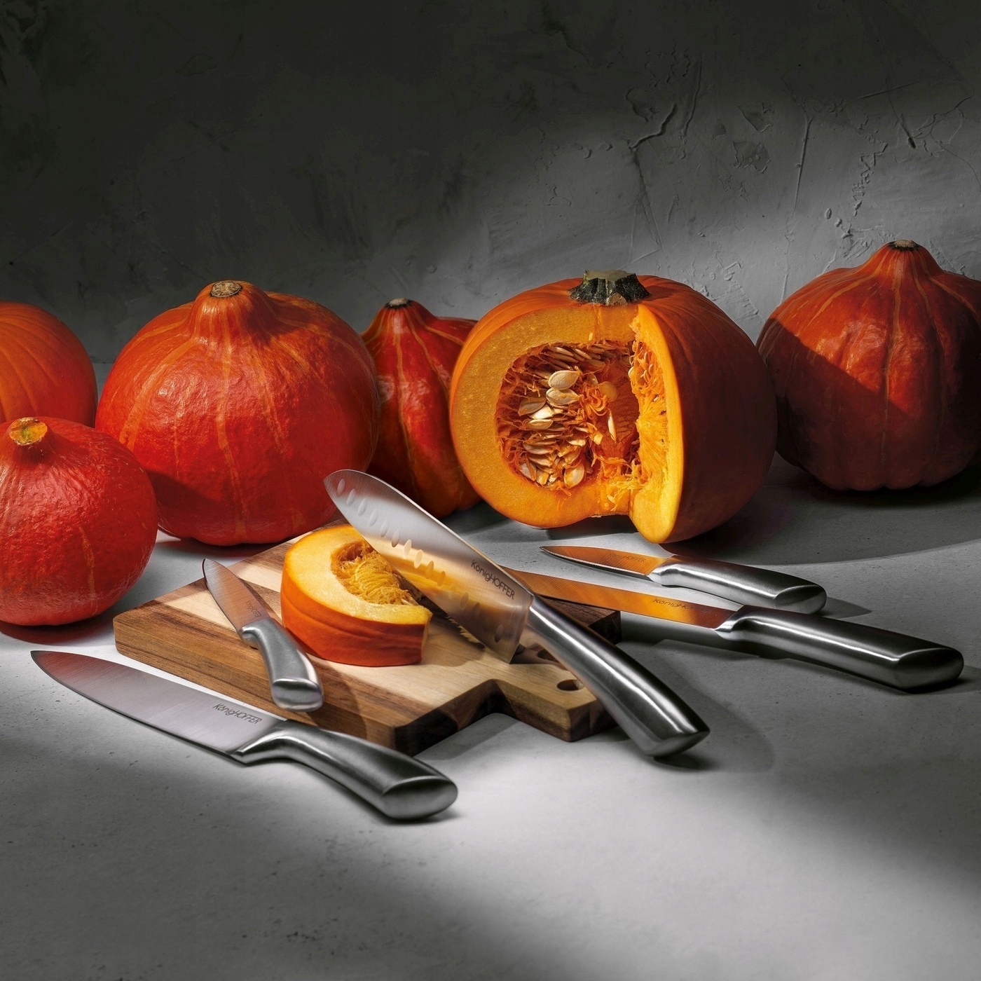 Konight Holly Oced and Fruit Noife 9 см має лезо з нержавіючої сталі та ергономічну ручку з профільованою формою. Тож ви отримаєте ніж, серед інших для овочів для салату, що дає певне зчеплення під час роботи. Його ручка також сталь. Він добре вписується в руку. Ви можете зручно вирізати з ним різні інгредієнти. Ви також дізнаєтесь комфорт та точність різання з твердим лезом з нержавіючої сталі. Його властивості полегшують догляд за продуктом. Ви додасте ще один ніж у свій домашній набір або побудуєте набір кухонних ножів - модель належить до серії Холлі, яка характеризується високою якістю.