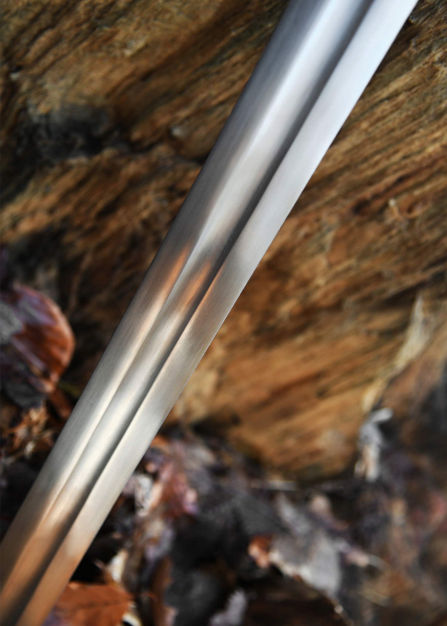 Меч постачається з дерев’яними піхвами, обтягнутими шкірою.