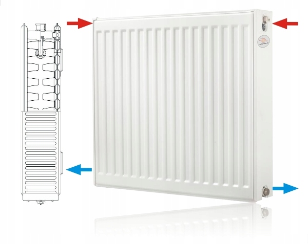 Характеристики: процес виробництва сталевих панельних радіаторів підлягає контролю якості, підтвердженому сертифікат системи якості відповідно до PN-стандарту ISO-9001, радіатори з бічним живленням також виробляються у версії з відстанню підключення 500 мм, що дозволяє їх безпроблемну установку в старих установках;