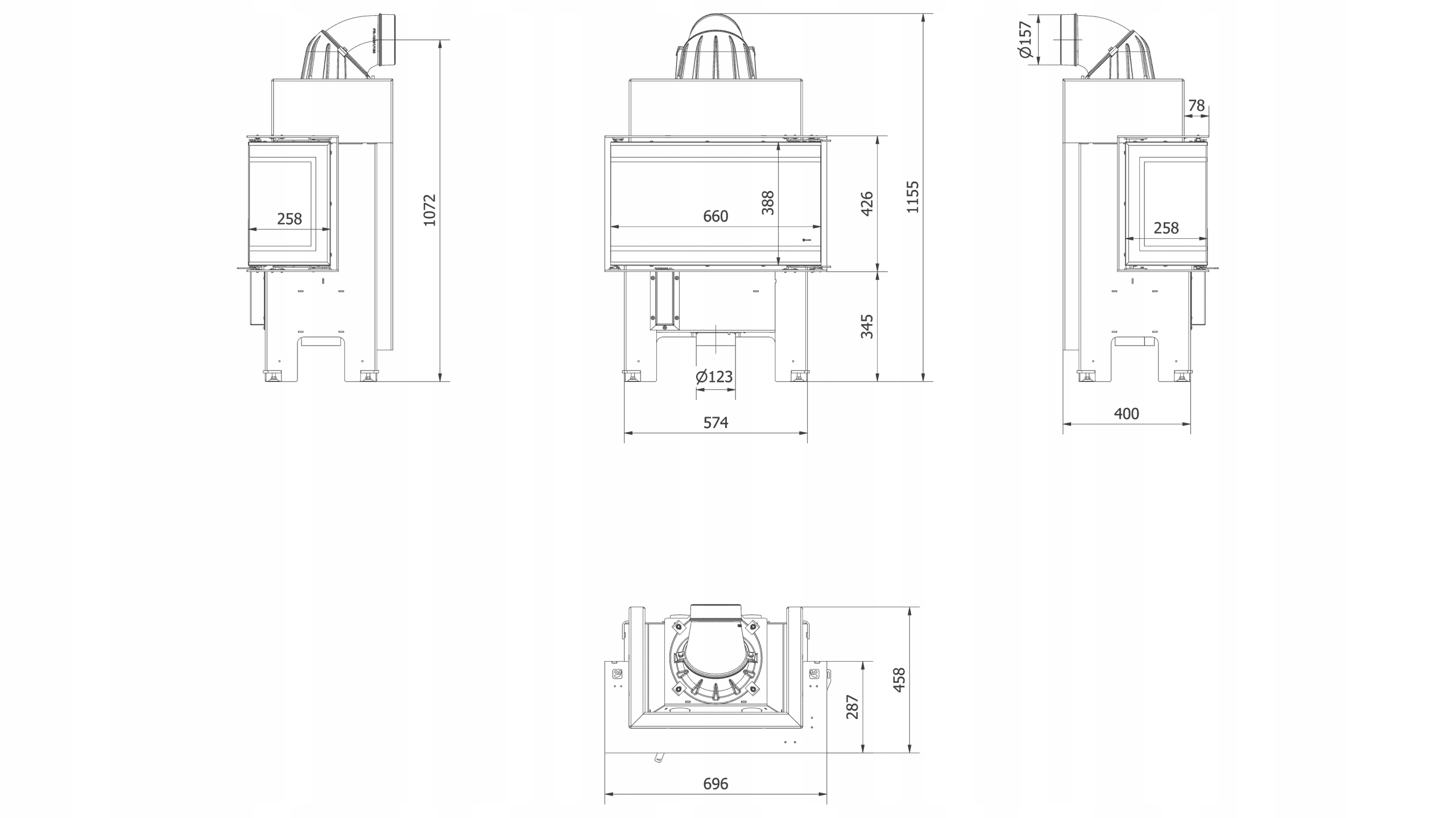 Сталевий повітряний камін NBC 680/280 ліворуч правий 7 кВт Ø 160 EKO