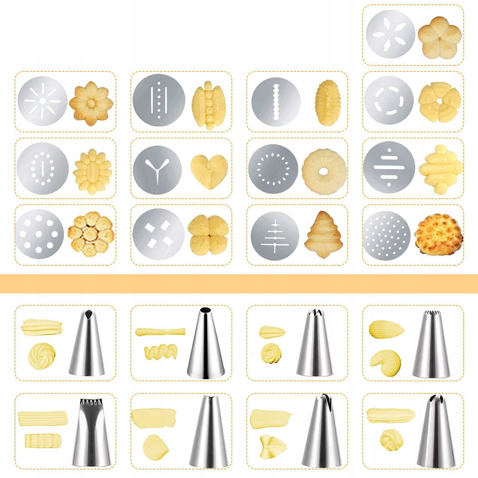 【МАТЕРІАЛ ВИСОКОЇ ЯКОСТІ】Прес для печива виготовлено з нержавіючої сталі 304 сталь, яка є стійкою до корозії, довговічною та високостійкою до іржі. Це найкращий кухонний інструмент для приготування власних тортів і десертів.