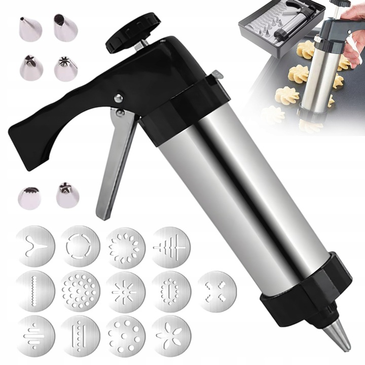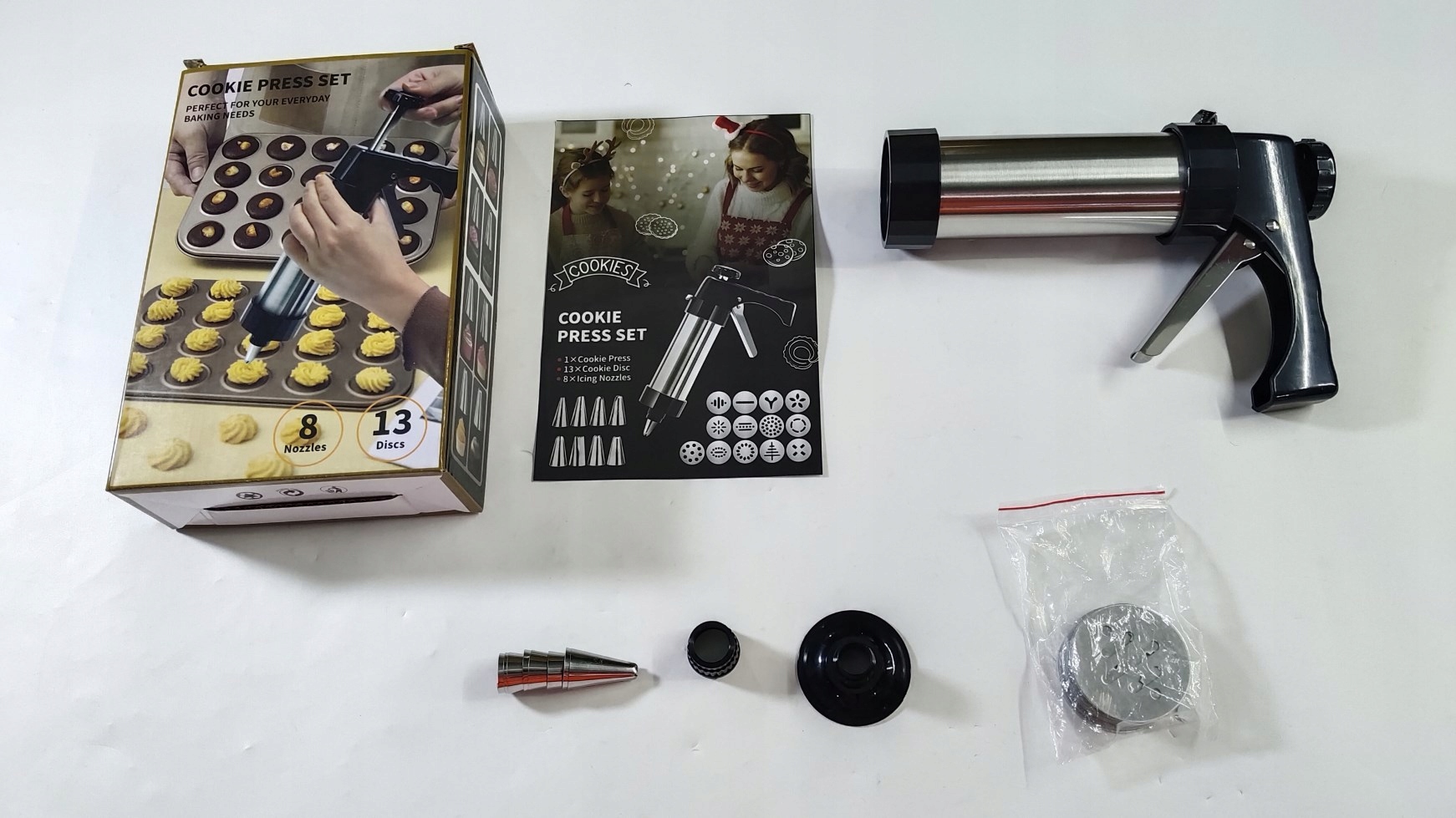 - Розміри пістолета для печива: Прибл. 25 см × 14,5 см / 9,45 × 5,71 дюйма (без насадки)
