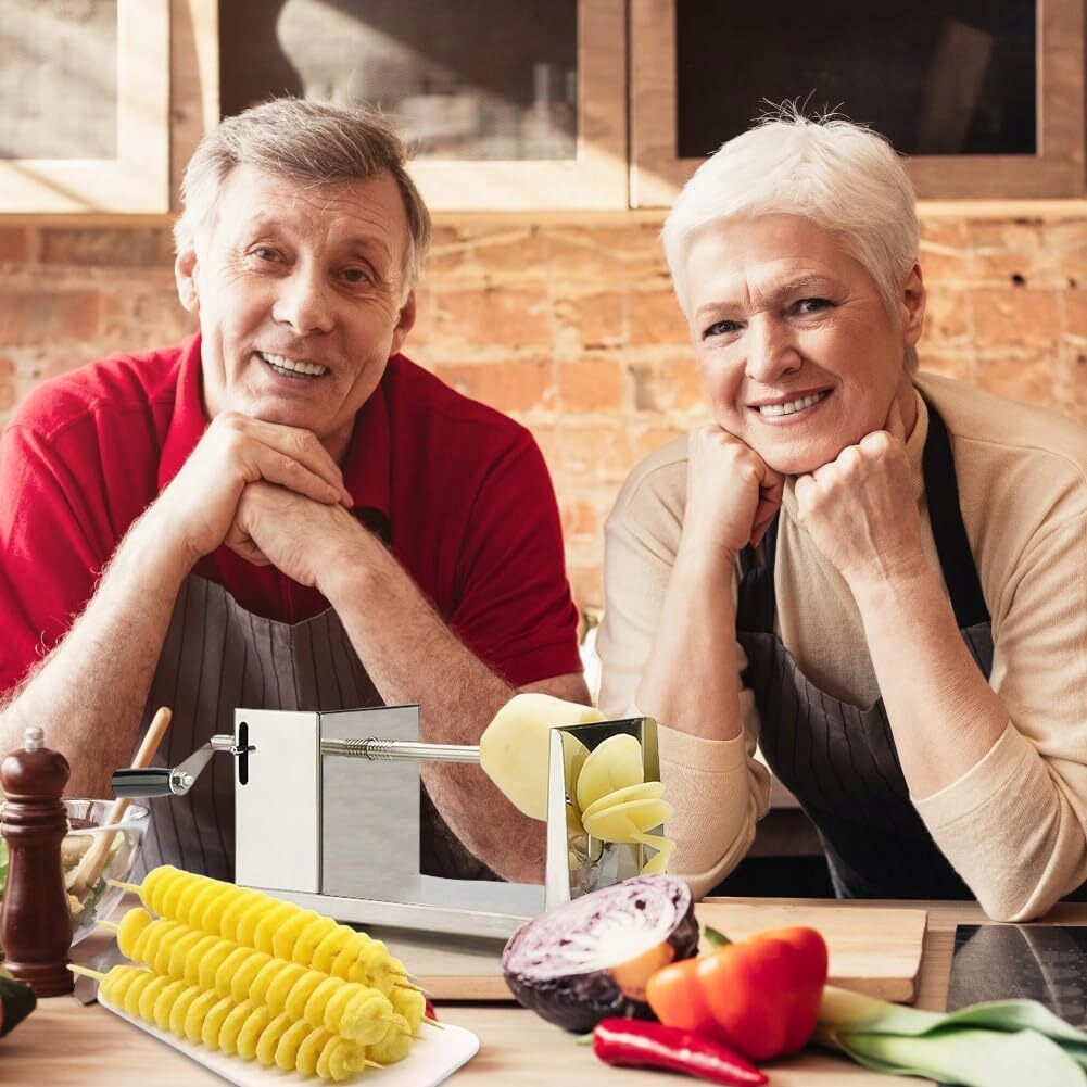 🥔【ЛЕГКИЙ У ВИКОРИСТОВУВАННІ】 Вміщує торнадо або спіральний ніж, адаптується до різного ступеня еліптичної та нерівної поверхні для різання фруктів, проста робота, економить більше часу. Ця спіральна картоплерізка призначена для використання вдома, ресторанах і готелях.