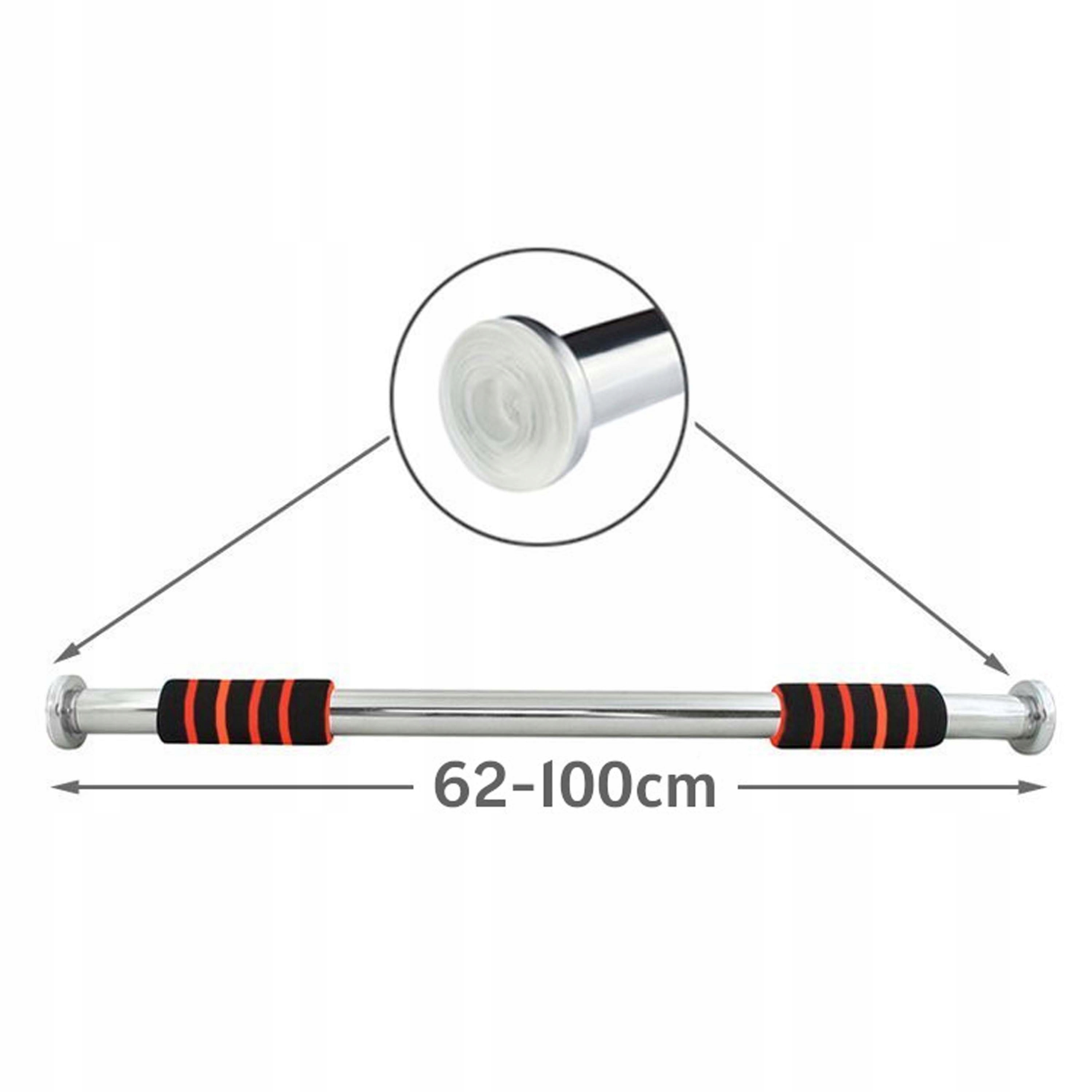 Стержень можна регулювати по довжині, що робить його придатним для встановлення в будь-яку дверну коробку від 62-100 см. Це важливо, оскільки штанга має бути належним чином відрегульована за шириною дверей, щоб забезпечити безпечні та комфортні вправи. Перш ніж купувати штангу з таким регулюванням, переконайтеся, що штанга підходить до дверей приміщення, де вона буде використовуватися.