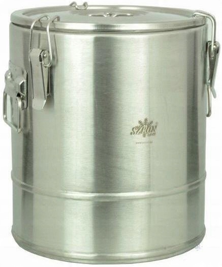 з подвійними стінками з утеплювачем та подвійним кришка з ущільнювачем силіконовим і вентиляційним. Термос маєкришку, що закривається на 3 міцні засувки.
