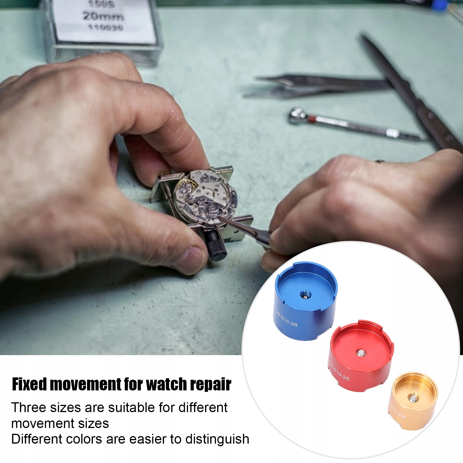 1. Цей набір механізму - це хороший інструмент для зміни механізму, порад або обслуговування годинника. Цей інструмент годинника був спеціально розроблений для запобігання годинникам або пошкодженням під час ремонтних робіт. Набір трьох сидінь є зручним для ремонтних операцій та економить час ремонту. Сталеві, довговічні, непрості в окисленні, високій твердій стійкості, сильна резистентність до корозії, прекрасний зовнішній вигляд. Три розміри підходять для різних розмірів механізмів, а різні кольори простіше розрізнити і використовуються для підтримки годинників.
