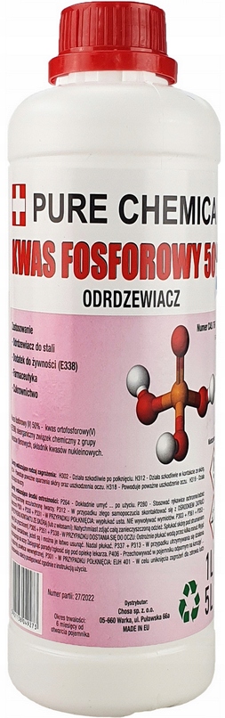 Просматривая «СТАЛЕВИЙ ВИПУСК I? ELIWA ФОСФОРНА КИСЛОТА 1л», вы можете быть уверены, что данный товар из каталога «Ржавчина и пенетраторы» будет доставлен из Польши и проверен на целостность. В цене товара, указанной на сайте, учтена доставка из Польши. Внимание!!! Товары для Евросоюза, согласно законодательству стран Евросоюза, могут отличаться упаковкой или наполнением.