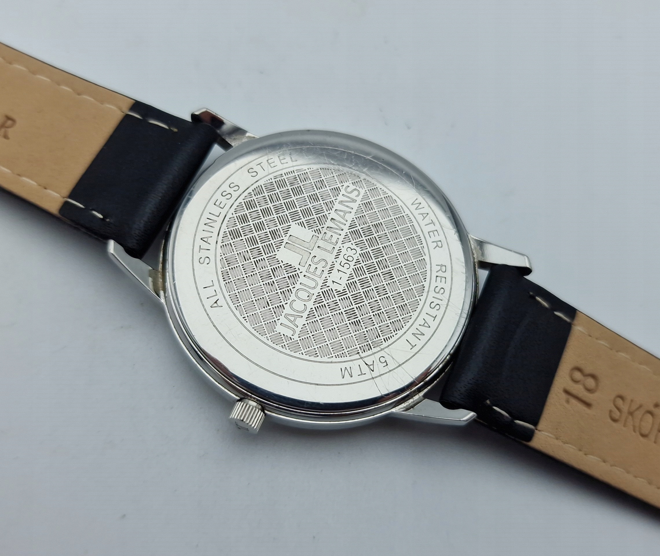 - сталевий конверт. Задня кришка закріплена фіксатором і позначена: «ВСІМ НЕРЖАВІЮЧИМ СТАЛЕМ, ВОДОСТІЙКІСТЬ 5ATM, JACQUES LEMANS». Оригінальне мереживо, майже в ідеальному стані. Конверт майже в ідеальному стані, як на фото.