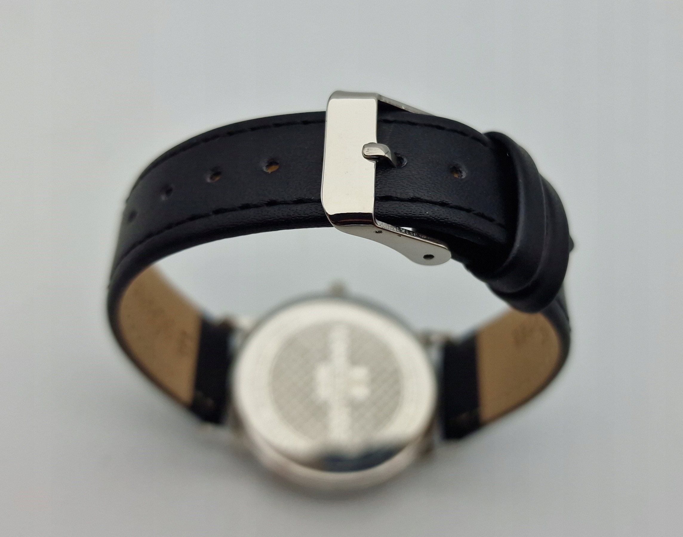 - Діаметр годинника 3,6 см без заводної головки та вушок, є ремінець. Висота з ручками 4,3 см. У комплекті новий чорний ремінець з натуральної шкіри.