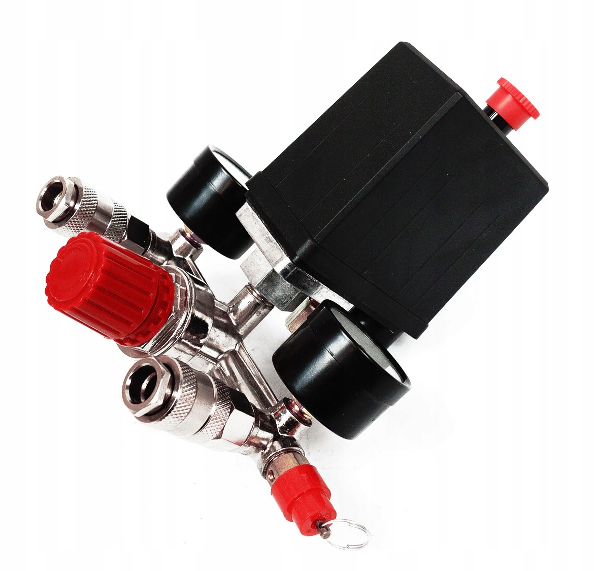Високоякісний реле тиску (реле тиску) з колектором, двома швидкими з'єднувачами та манометрами призначене для компресорів 230В.