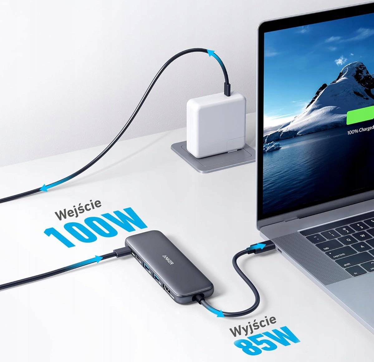 - Одночасне заряджання та робота — PD Порт 100 Вт для наскрізної зарядки ноутбука.
