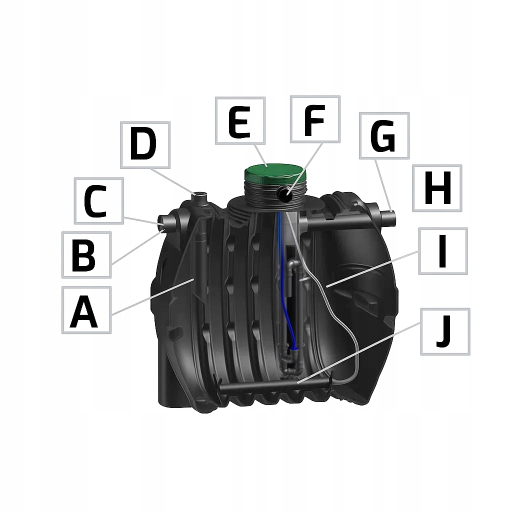 - J – Дифузор, що аерує стічні води