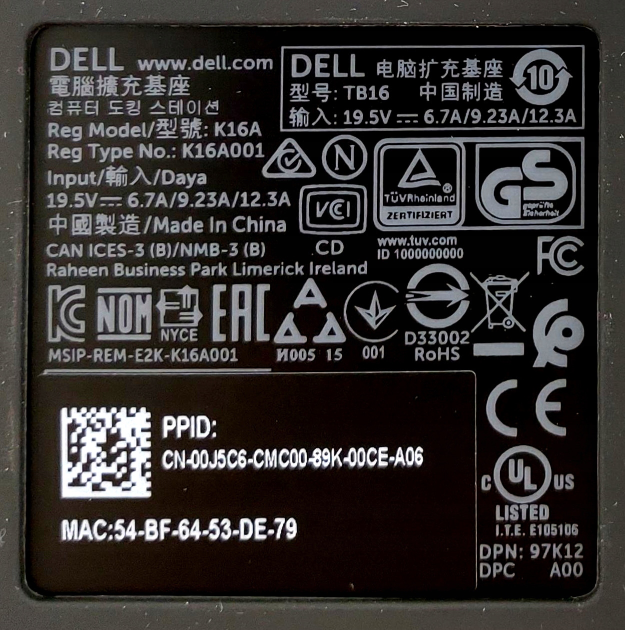 - Модель: DELL THUNDERBOLT DOCK TB16