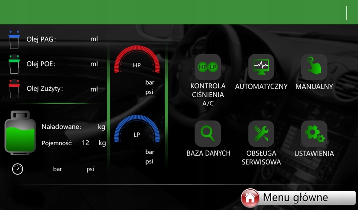 - Манометри: віртуальні цифрові манометри, видимі в меню на дисплеї