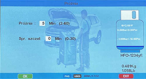 Станція кондиціонування R-1234YF Kupczyk Menu Menu PL Automa Ac-Pro