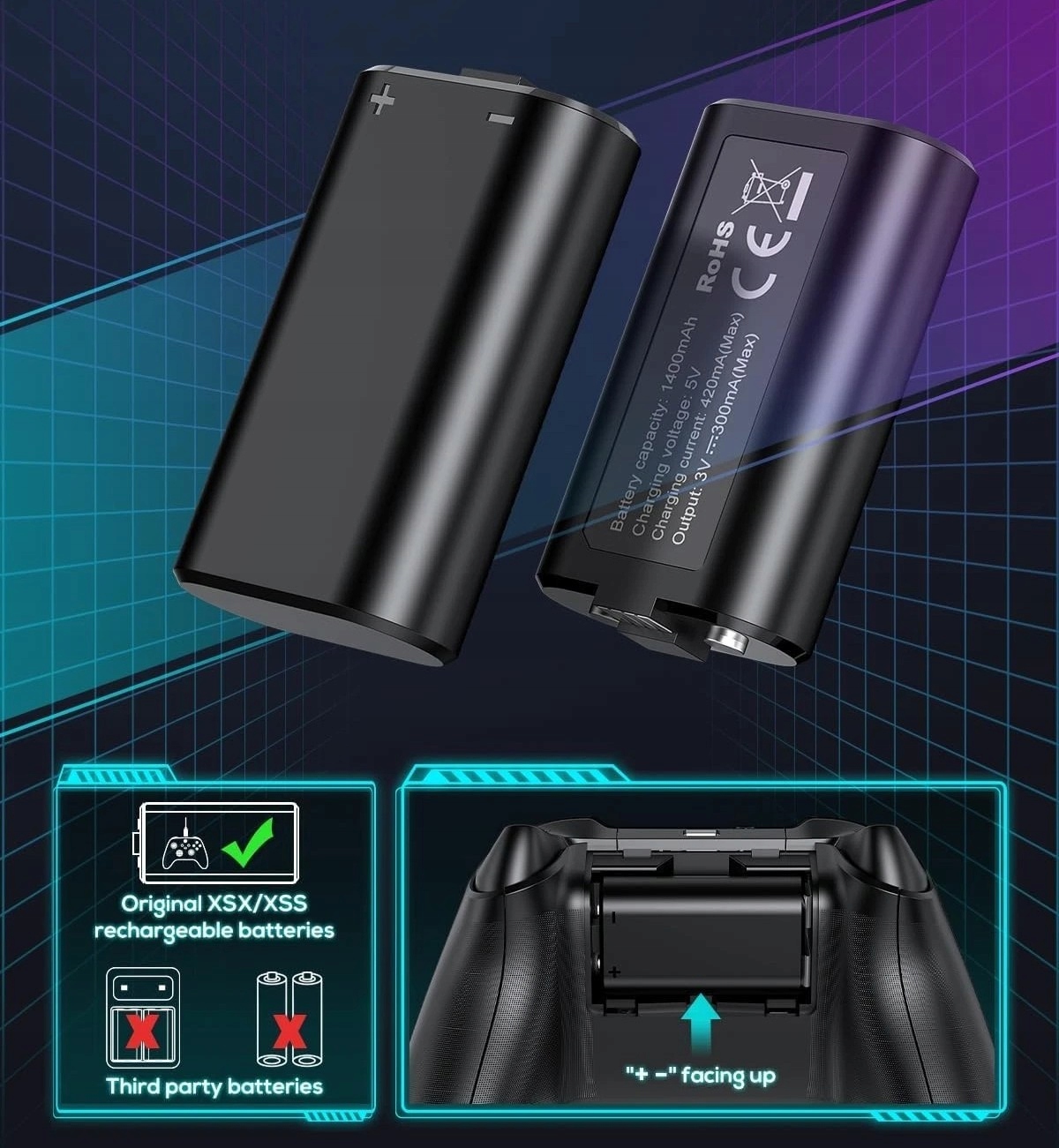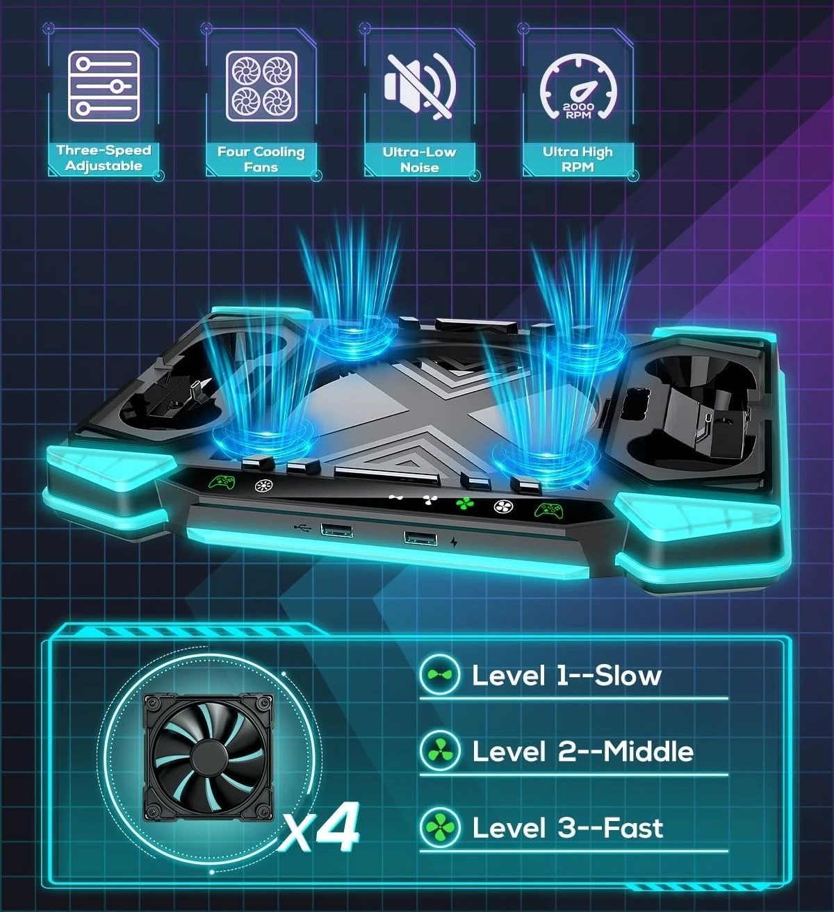 Станція охолодження та зарядки Xbox Series X з RGB, акумулятор 2×1400 мАг