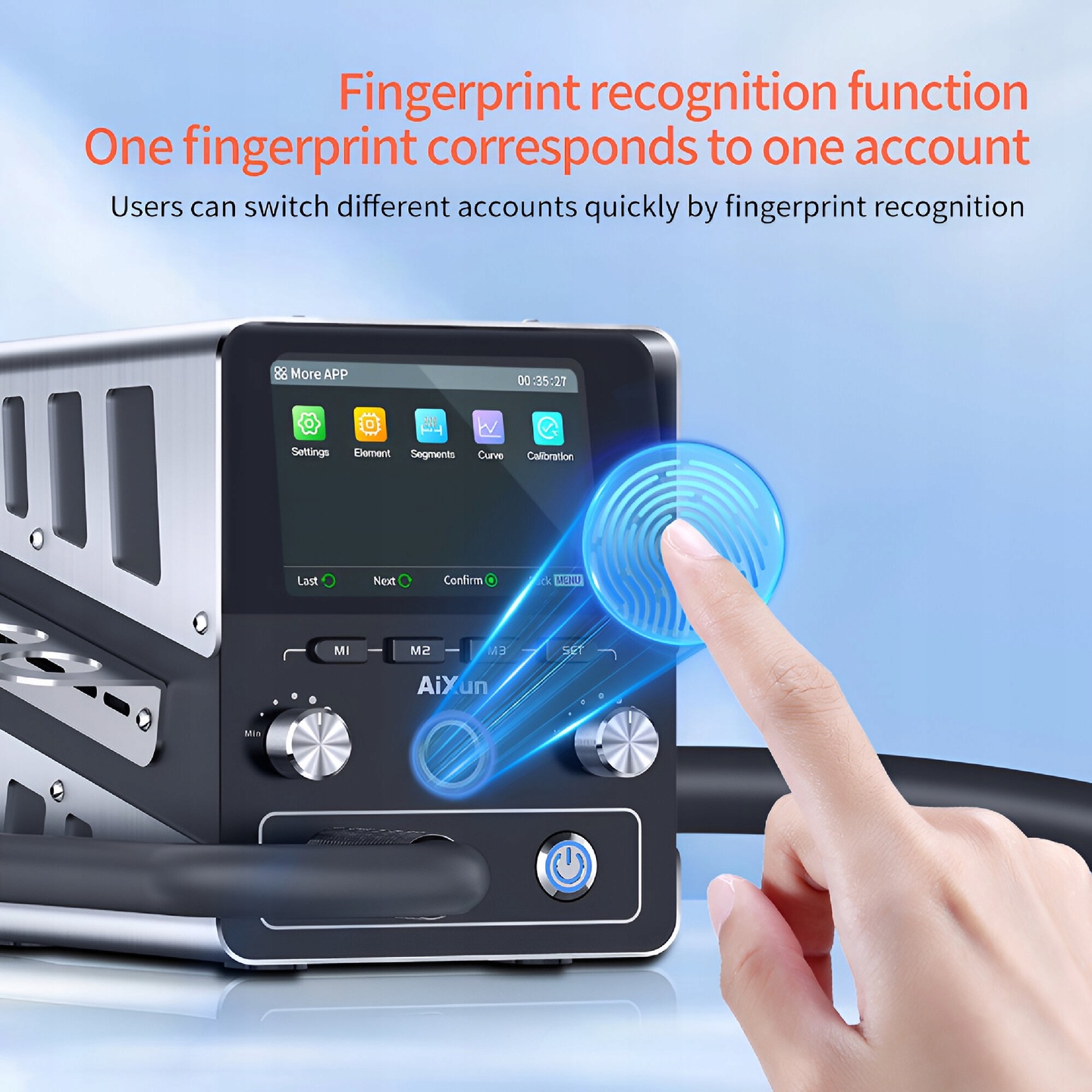 - Читач відбитків пальців: дозволяє призначити 5 відбитків пальців персоналізованими налаштуваннями. На одному профілі відбитків пальців. . Користувачі можуть створювати, змінювати, економити та ділитися власними параметрами , що дозволяє створити ексклюзивну базу даних. B> Три режими роботи : стандартний, м'який режим (для роз'ємів Desolder) та швидкий режим (для інтегрованих схем Deesolding). Ці режими можна швидко перейти на спеціальний перемикач, який значно сприяє роботі навіть початківців. Серед інших, оновлення самої паяльної станції, наприклад, пристрій для калібрування AX-DT01.