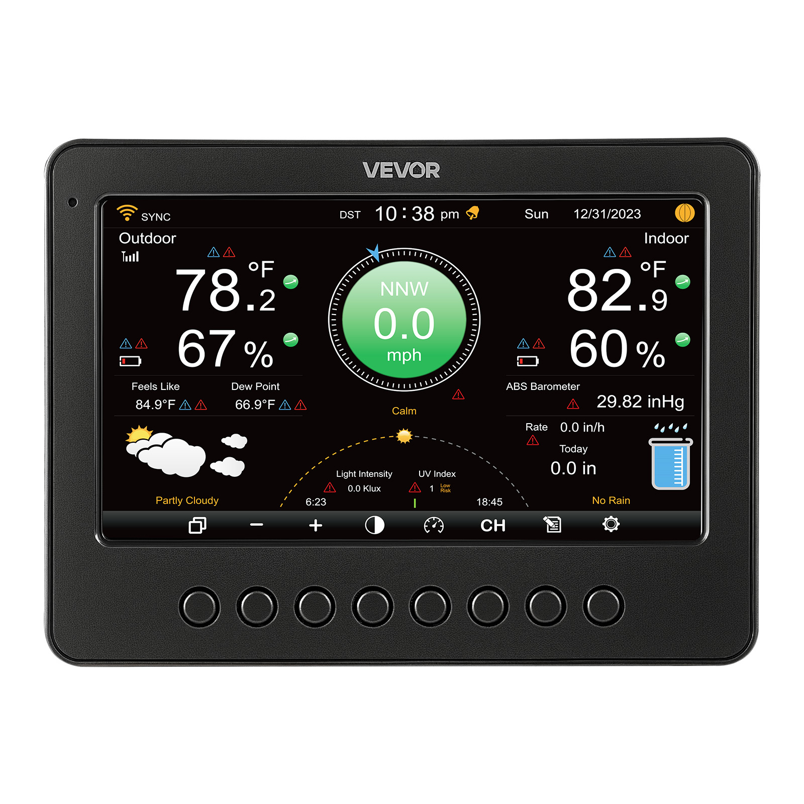 Зовнішній датчик 7 в 1: моніторинг температури, вологості, кількості опадів, швидкості вітру, напрямку, сонячного світла тощо, а також точки роси, фази місяця та прогнози на 6-12 годин. Отримуйте інформацію про погоду, яка вам потрібна, щоб розумніше планувати з дому, за допомогою нашої метеостанції Wi-Fi.