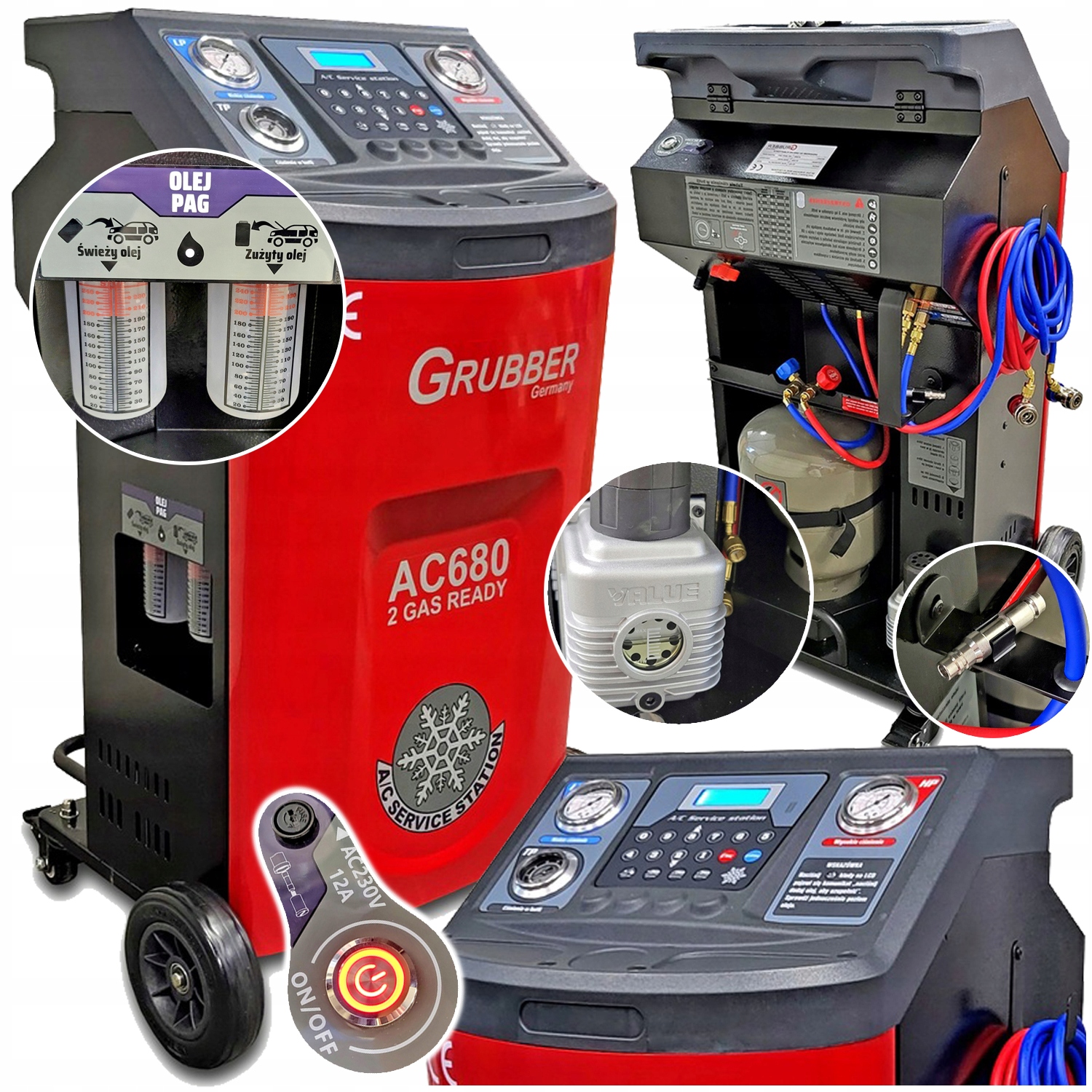 Неперевершена станція для підтримки служби кондиціонування автоматичного Grubber AC680 R134A/ 1234YF