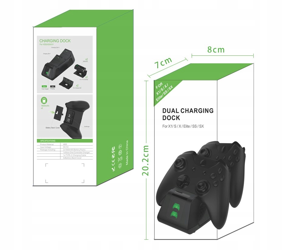розроблений спеціально для контролерів серії Xbox, не потребує складних налаштувань. Безпосередньо підключений до консолі електричної розетки для швидкого зарядки контролера, підвищуючи ефективність підготовки гри.