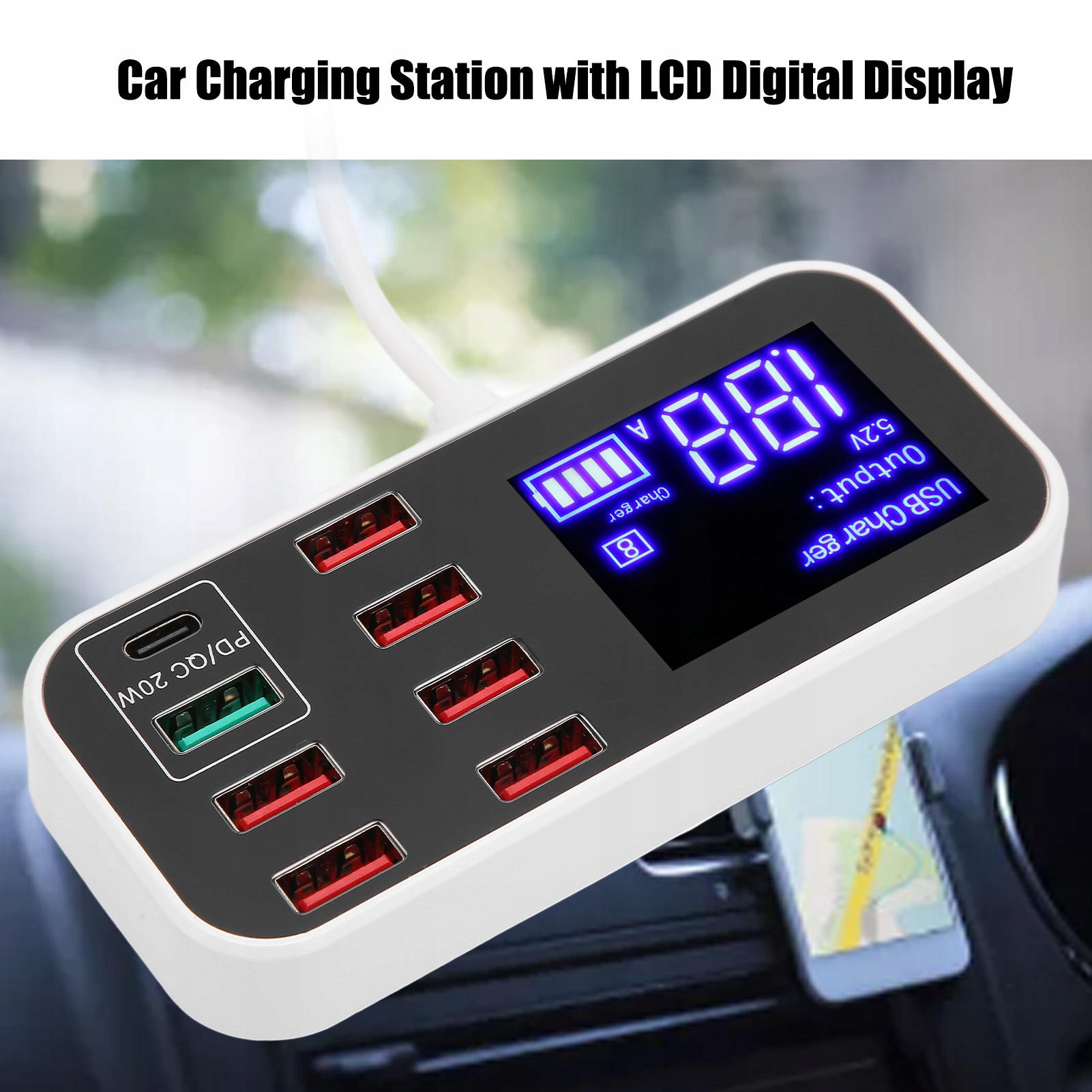 1. Багатоповерхова зарядка: оснащена восьми плагінами зарядки, ви можете заряджати багато пристроїв одночасно, не турбуючись, що ви не знайдете вилку під час руху. Високоякісна оболонка: корпус виготовлений з екологічно чистих ПК та АБС, зменшення горючості, який стійкий до високих температур і падінь, з високою міцністю та довговічністю. Детальний РК -дисплей: оснащений цифровим РК -дисплеєм, інтелектуально показує на екрані поточний та стан зарядки для кожного порту зарядки. Захист: побудований -система управління енергією ШІМ, інтелектуальне регулювання напруги та виходу для безпечної зарядки акумулятора може забезпечити комплексний захист для вас та вашого обладнання. Портативний: тонка і невелика структура, яка займає мало місця в машині. Невеликий, портативний і простий у подорожі без навантаження.