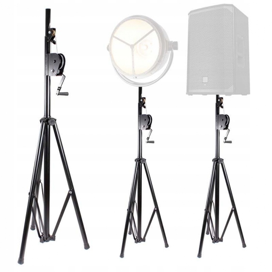 Штатив для освітлення і сценічних колон Stand4Me LS3000 - високоякісна світлова підставка з т.зв «ліфт», тобто кривошипно-шатунний механізм і класична тросова лебідка. Стійка підходить як для підтримки траверс і сценічних ферм для монтажу освітлювального та сценічного обладнання, так і як масивний штатив для важких колонок. Діаметр верхньої труби становить 35 мм, тому вона підходить як для монтажного кронштейна траверси/алюмінієвої конструкції Stand4Me WIND UP KIT, так і для будь-якого адаптера колони. Для безпеки штатив оснащений штифтами, які запобігають випадковому опусканню підсідельного штиря. Додатковою перевагою є розкладання і складання триноги, яке займає буквально кілька секунд, що дуже важливо при установці мобільних конструкцій. Якість і конкурентоспроможність Stand4Me Торгова марка Stand4Me, завдяки поєднанню високоякісної продукції з доступною ціною, користується великим визнанням серед клієнтів з усієї Польщі та за її межами. Стенд LS3000 часто вибирають мобільні ді-джеї, гурти та організації, що проводять заходи. Кривошипно-шатунний механізм - зручне рішення для розміщення траверси з підсвічуванням на відповідній висоті. Завдяки цьому ми забезпечимо хороше освітлення діджейської кабінки, сцени для гурту, а головне – танцполу, де веселяться гості. Технічні характеристики: Матеріал: сталь з порошковим покриттям Чорний колір Максимальна висота: 3 м Максимальне навантаження: 70 кг Діаметр верхньої труби: 3/8" (35 мм) - підходить для динаміків Відстань між підставами: 1,6 м Вага: 15,5 кг Оригінальна упаковка та начинка.