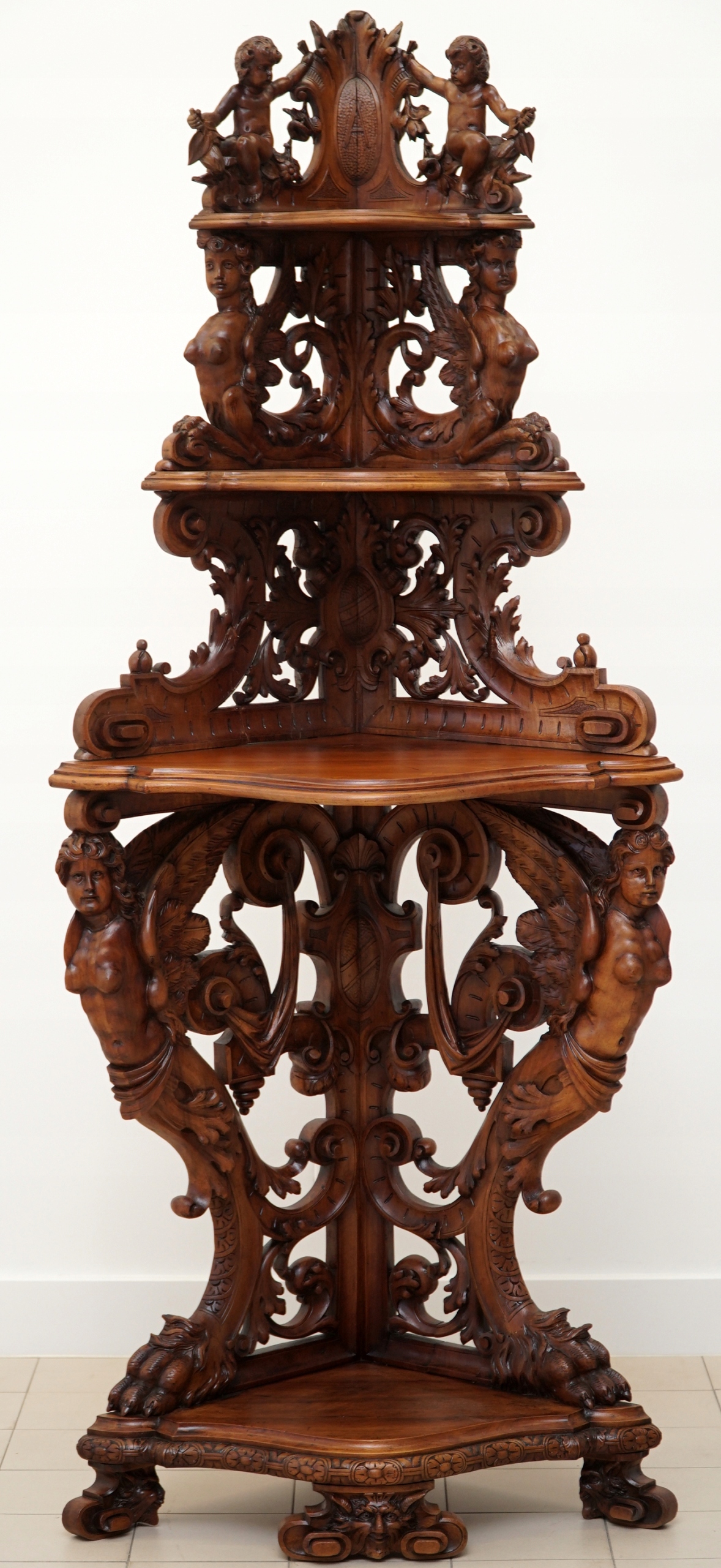 Полиця в стилі бароко, кутник з масиву горіха. Походження Західна Європа, друга половина 19 ст.