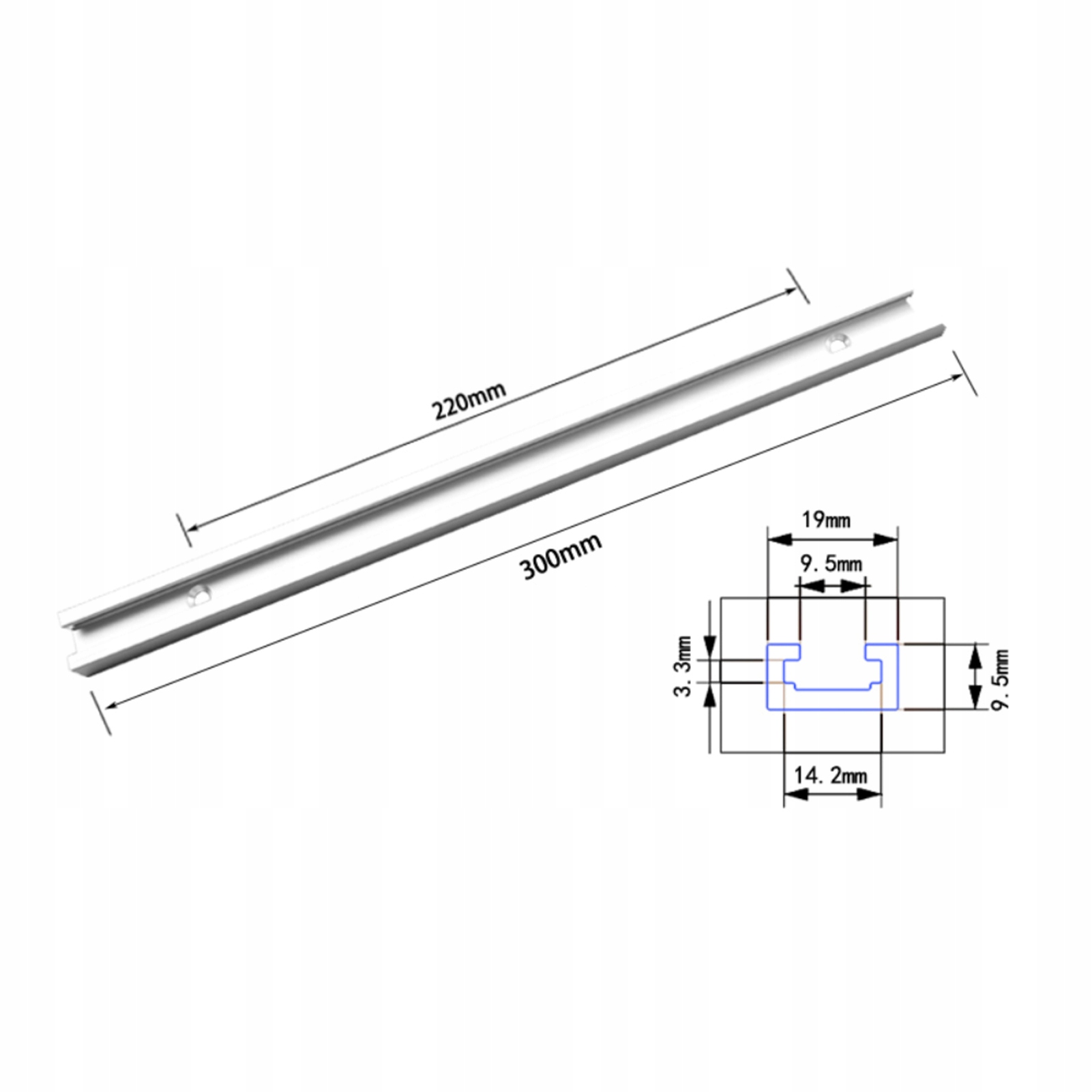 Деревообробний інструмент із алюмінієвого сплаву, Т-образний паз, тримач для скосу, непористий, тримач пластини (300 мм)